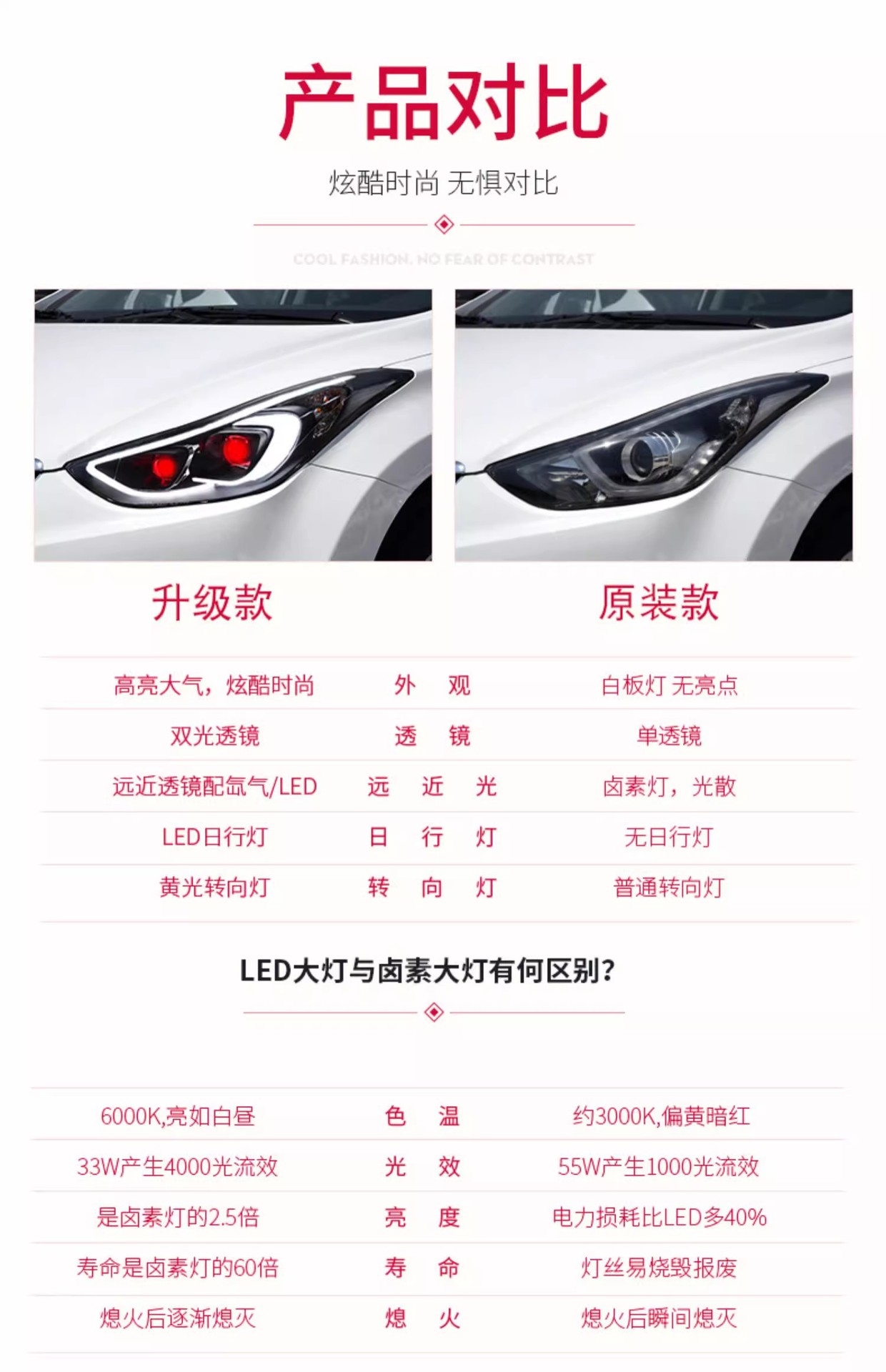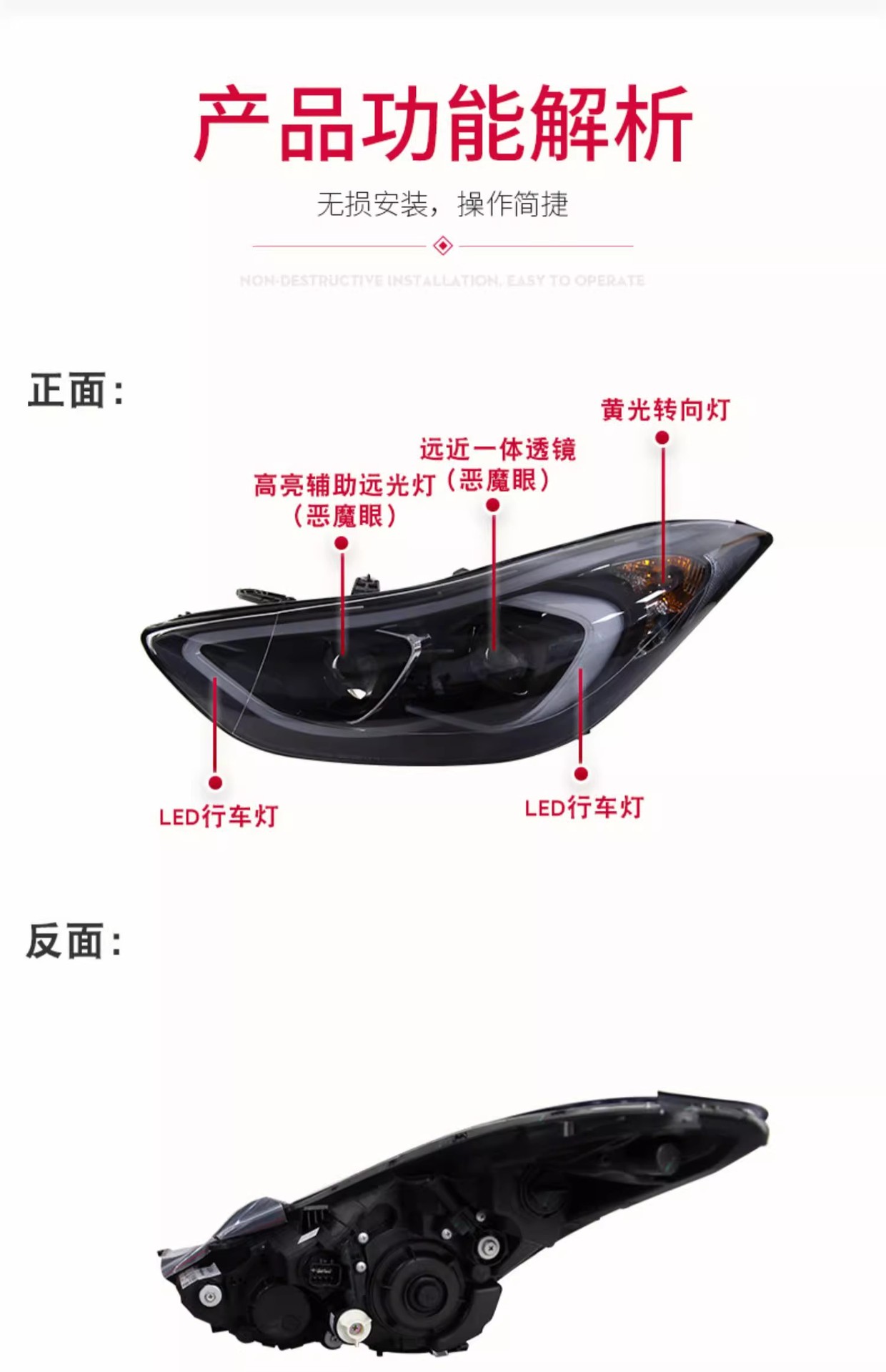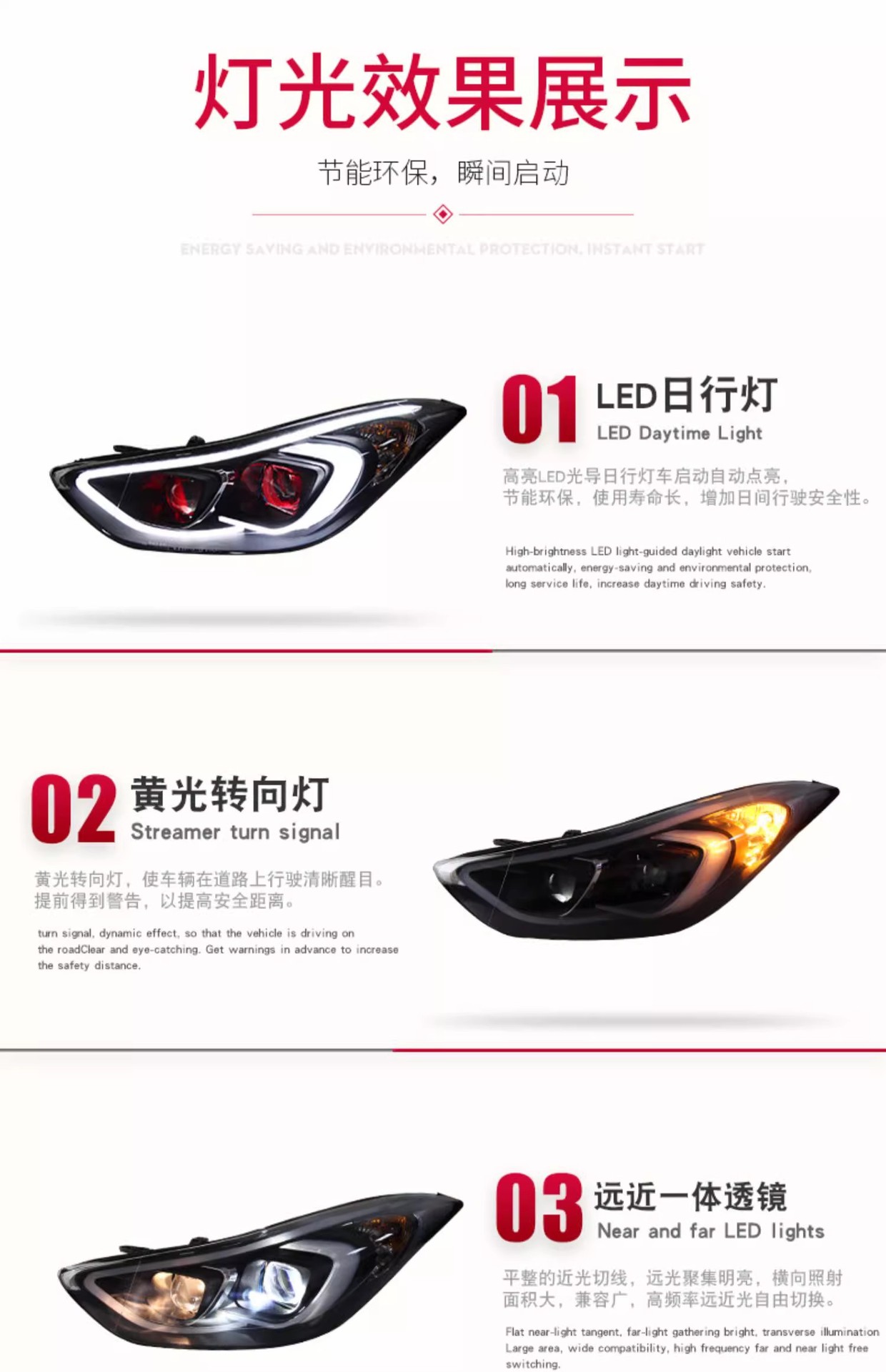 LED DRL Demon Eye Projector Xenon Headlight Assembly for Hyundai Elantra (2012-2016)