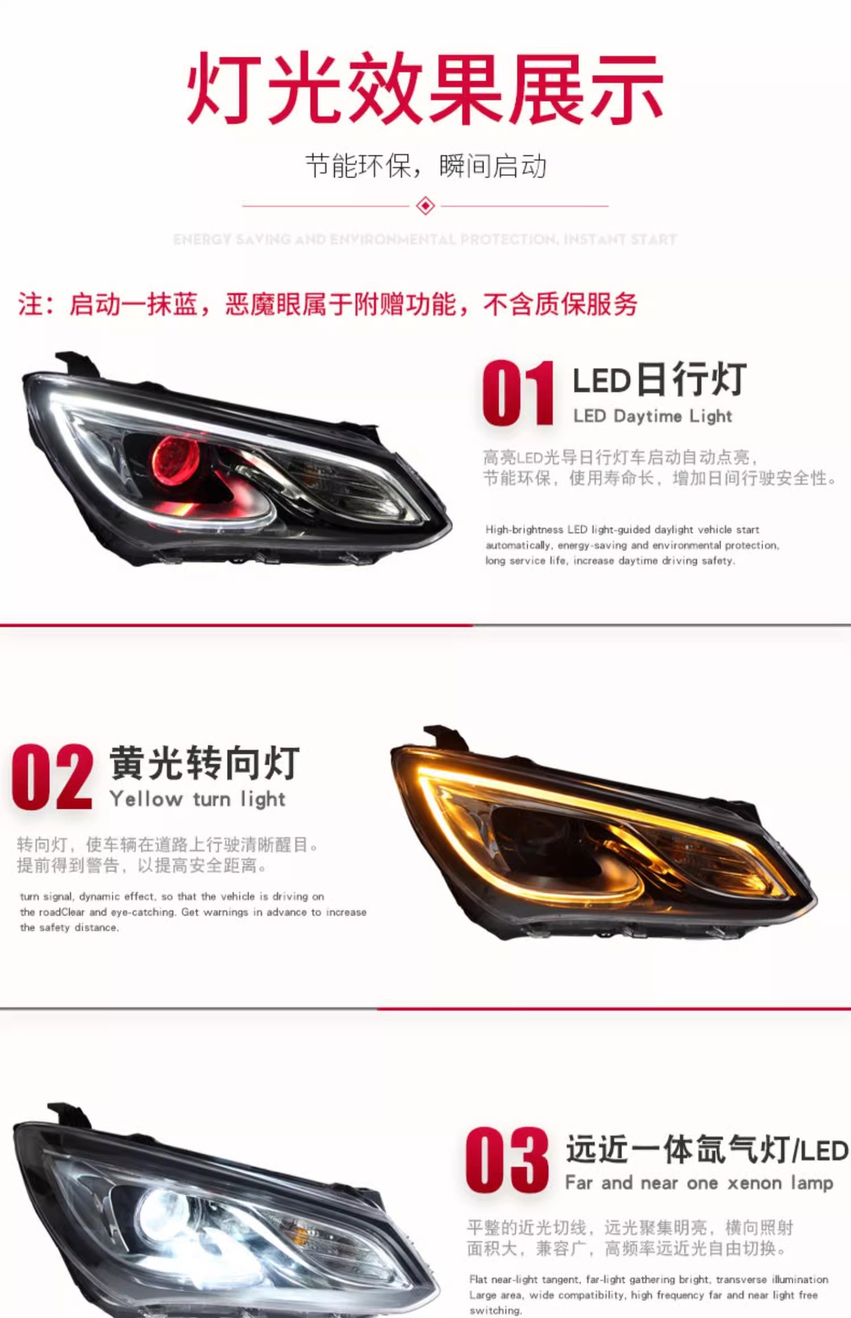 LED DRL Devil Eyes High Beam HID Headlight Assembly for Buick Excelle XT Encore (2015-2017)