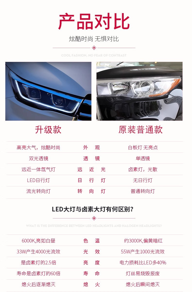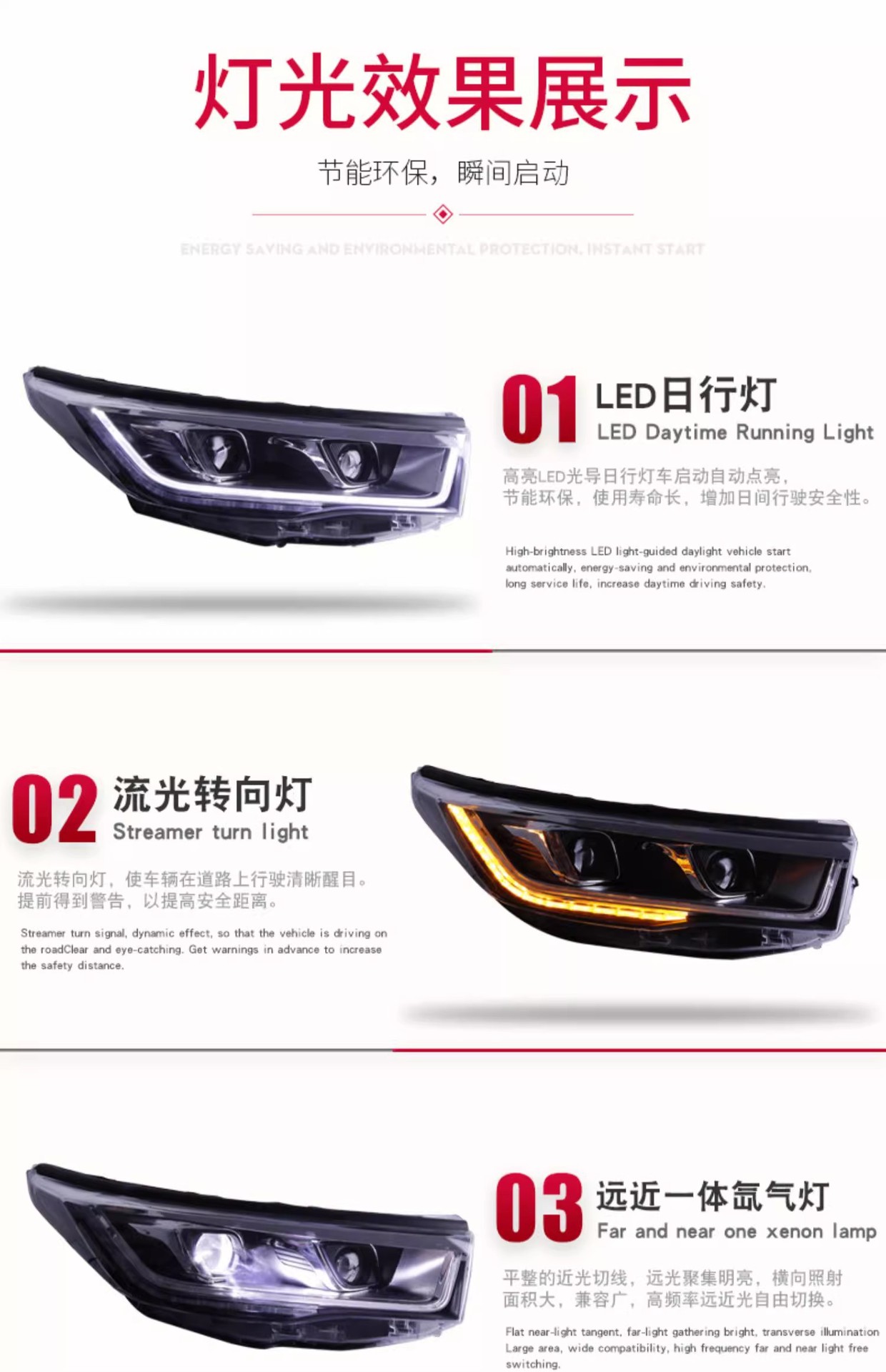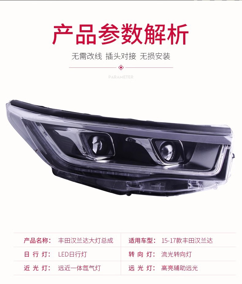 - Enhanced Aesthetics & Style: Features integrated LED Daytime Running Lights (DRL) and dynamic flowing turn signals, along with bi-xenon projector lenses to give your Highlander a modern, upgraded, and distinctive look.