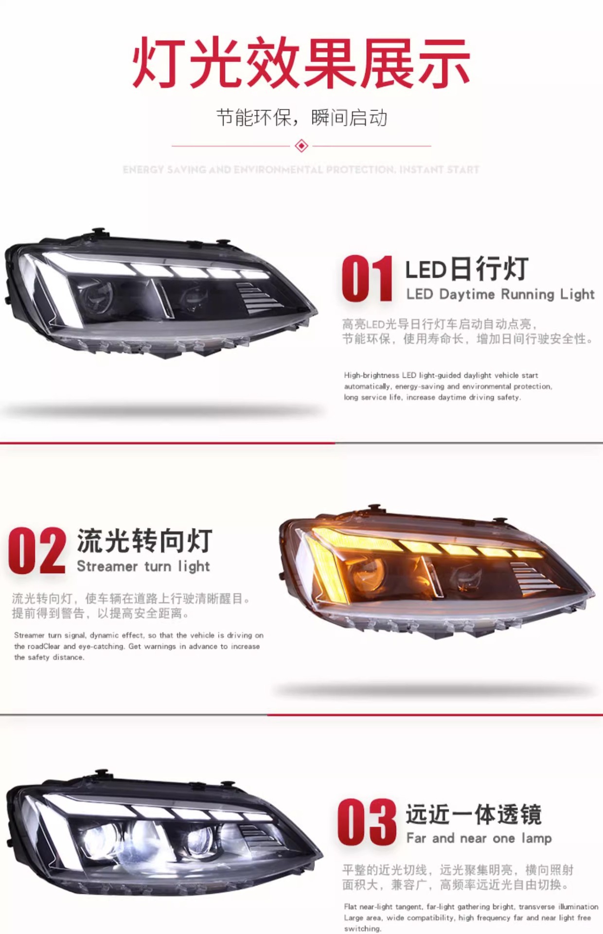 LED DRL Flowing Turn Signal Bi-Xenon Lens Headlight Assembly for Volkswagen Sagitar 2012-2018