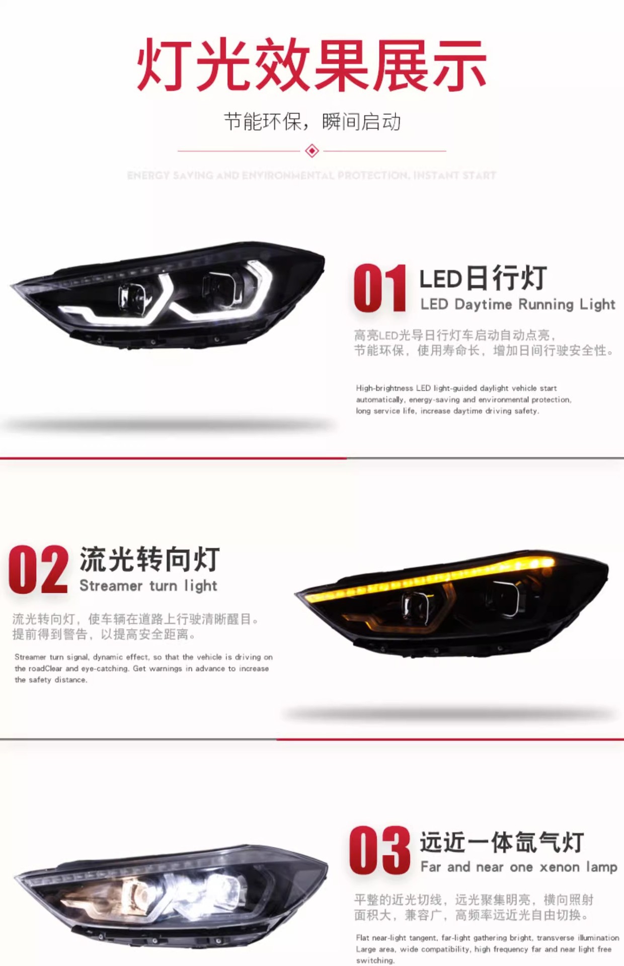 LED DRL Flowing Turn Signal Bi-Xenon Lens Headlight Assembly for Hyundai Elantra 2016-2019