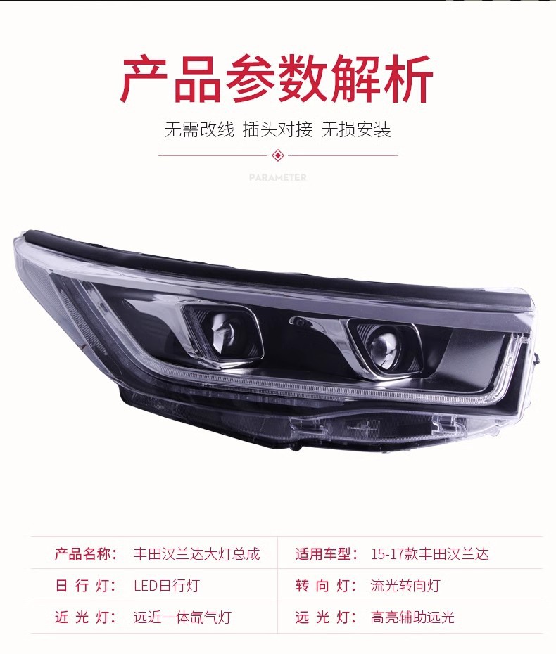 - Direct Fitment: A perfect replacement for the original headlight of Toyota Highlander 2015. Specifically designed for models with AT/automatic transmission.