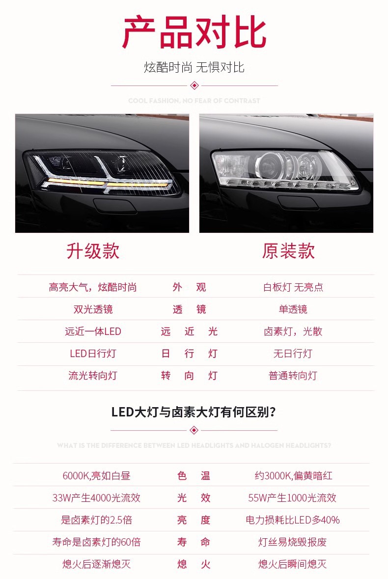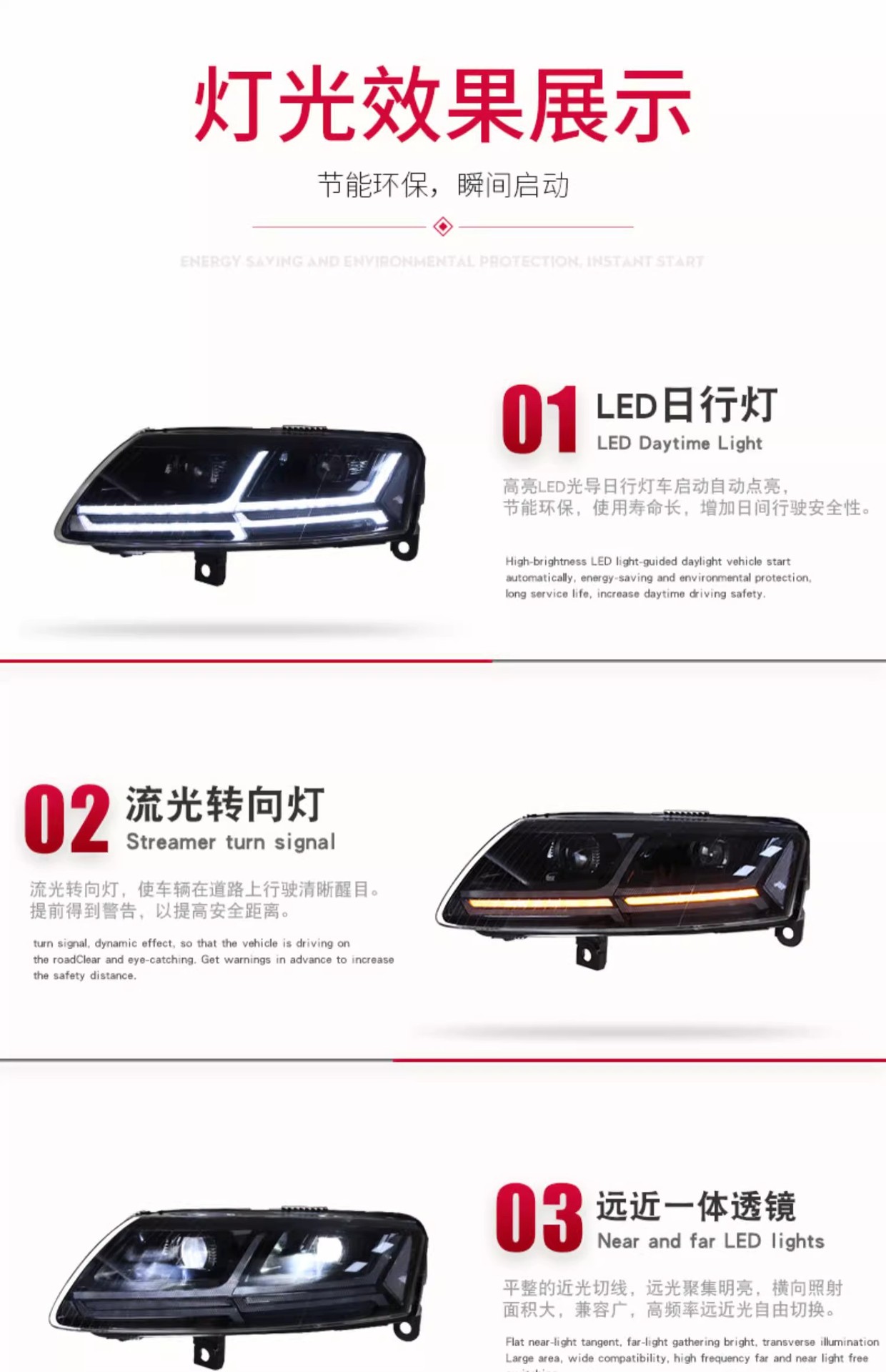 LED DRL Flowing Turn Signal Bi-xenon Projector Headlight Assembly for Audi A6L (2005-2011)