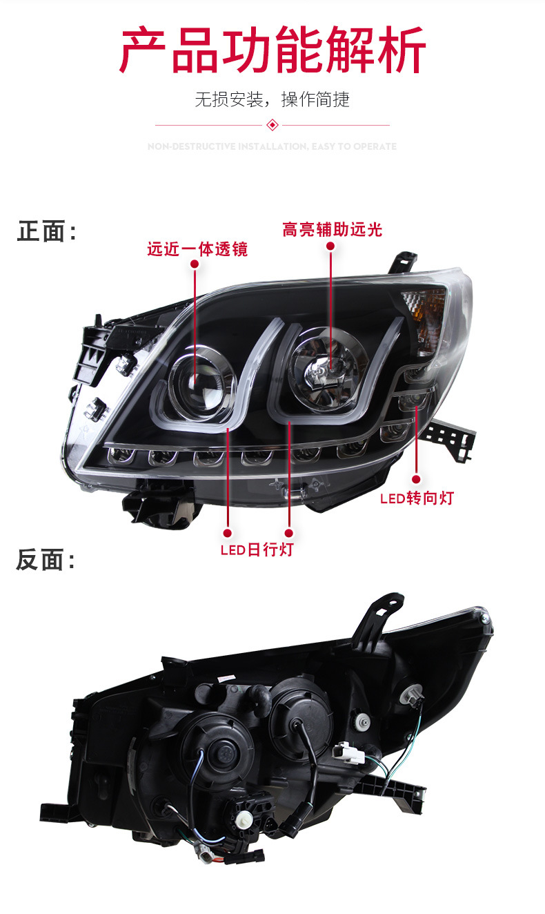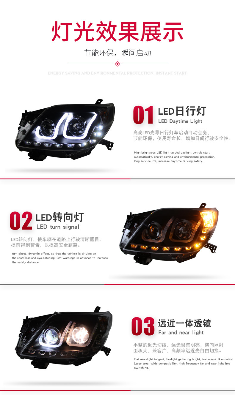 - Enhanced Aesthetics: Features modern LED Daytime Running Lights (DRL) and dynamic flowing turn signals, upgrading your vehicle’s appearance with a sleek and contemporary look.