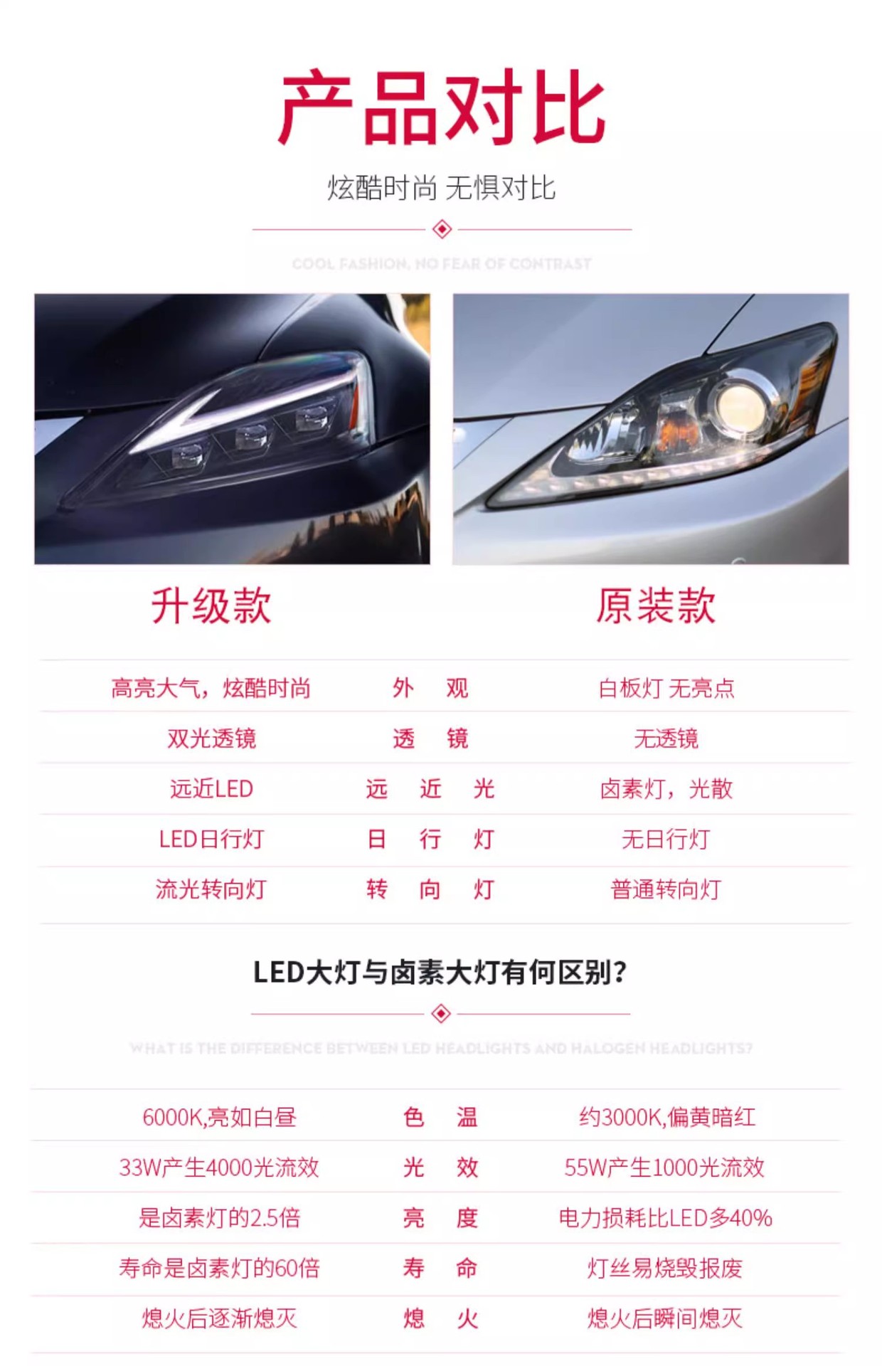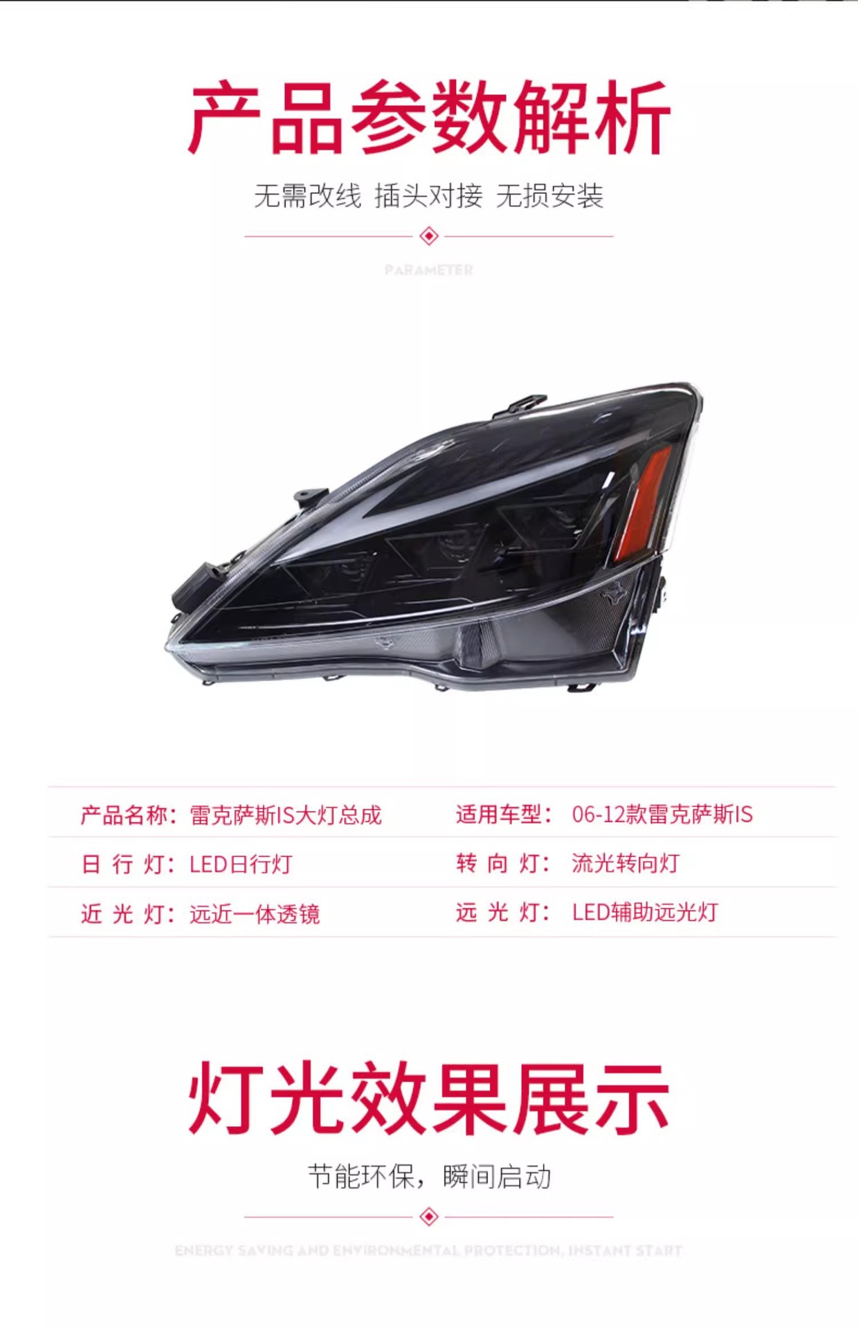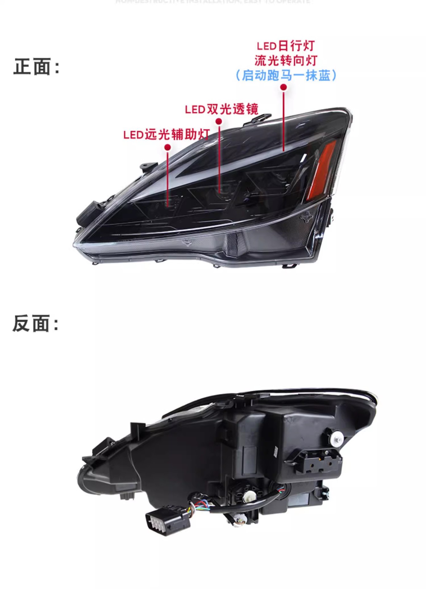 LED DRL Flowing Turn Signal Headlight Assembly for Lexus IS250 IS300