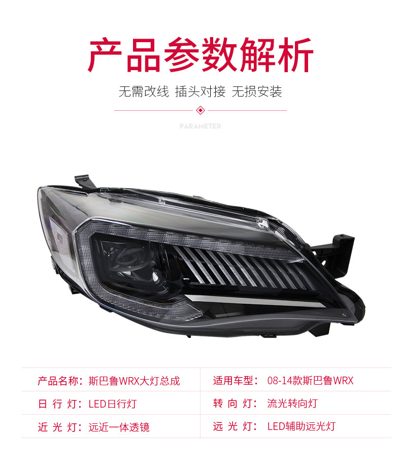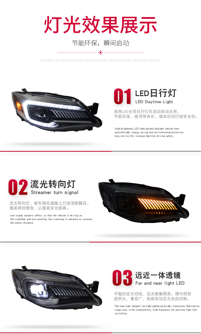 LED DRL Flowing Turn Signal Headlight Assembly for Subaru Impreza WRX (2008-2014)