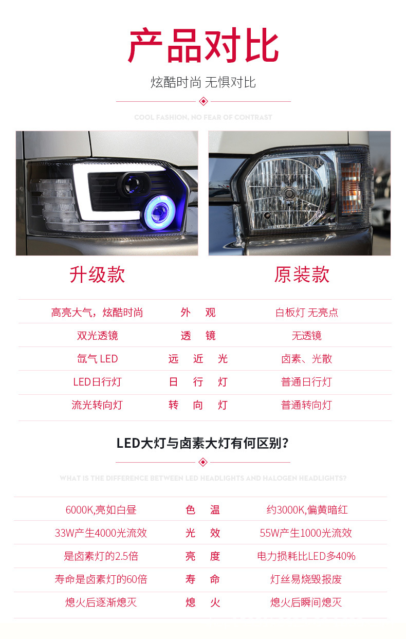 LED DRL Flowing Turn Signal Headlight Assembly for Toyota Hiace 2005-2018