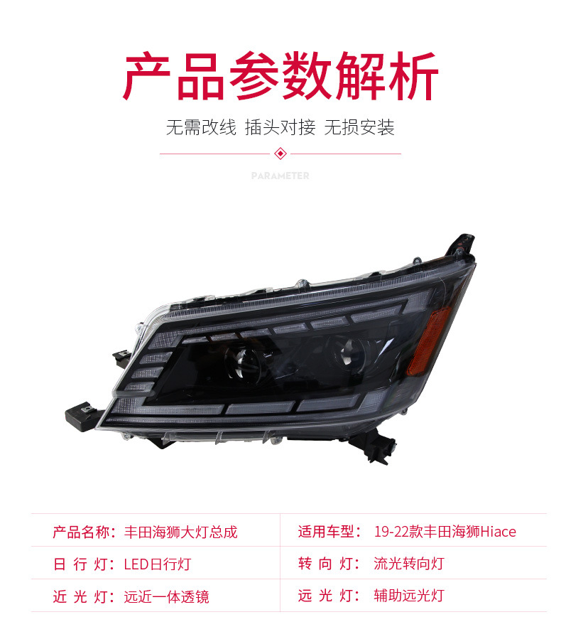 LED DRL Flowing Turn Signal Headlight Assembly for Toyota Hiace 300 Series (2019-2025)