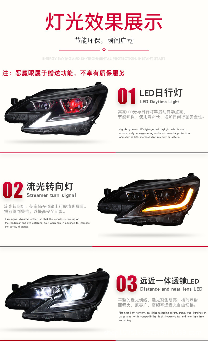 - Enhanced Visibility: Features built-in LED daytime running lights (DRL) and dynamic flowing turn signals, significantly improving road visibility and driving safety.