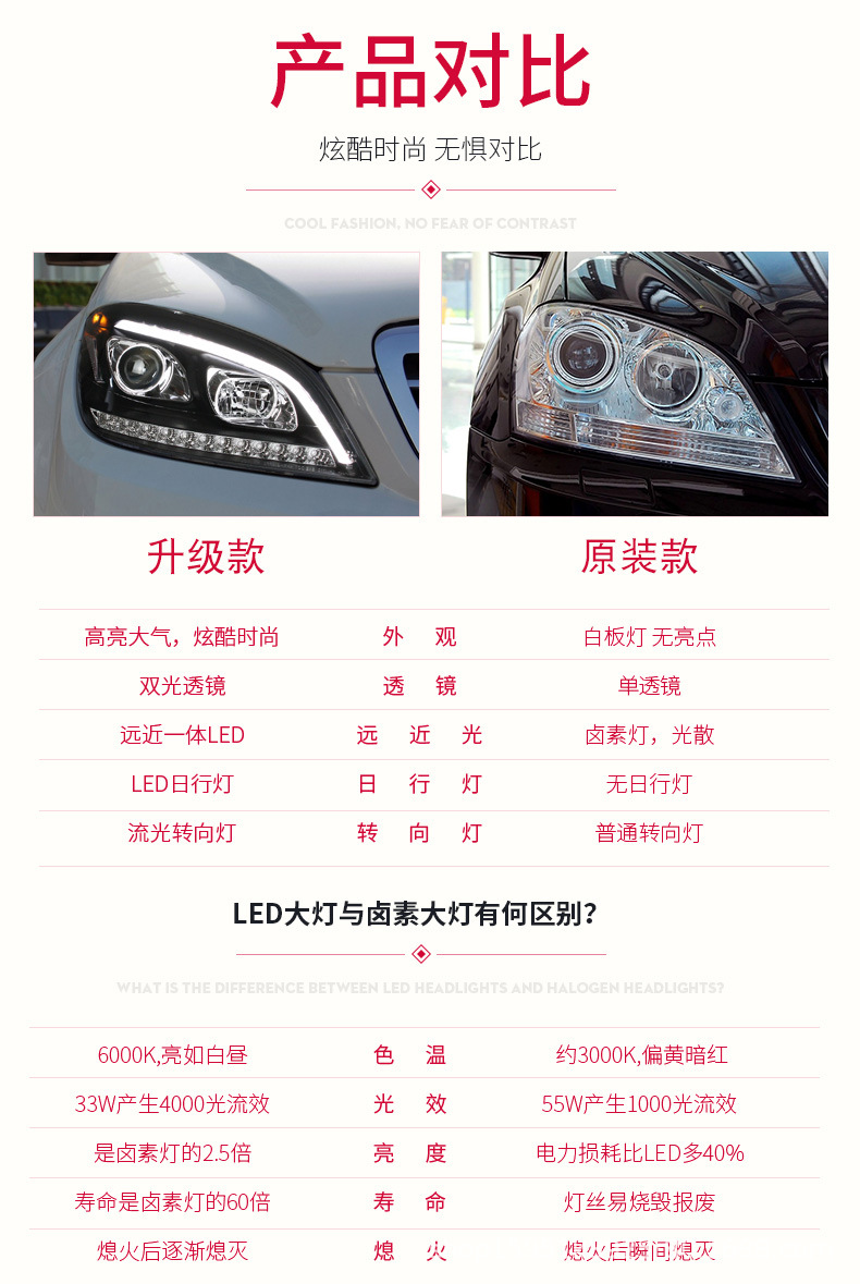 - Modern Aesthetic Upgrade: Features integrated LED Daytime Running Lights (DRL) and dynamic flowing turn signals, transforming the front of your vehicle with a sleek, contemporary look and improved road presence.