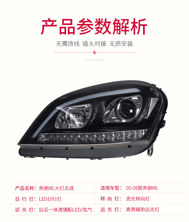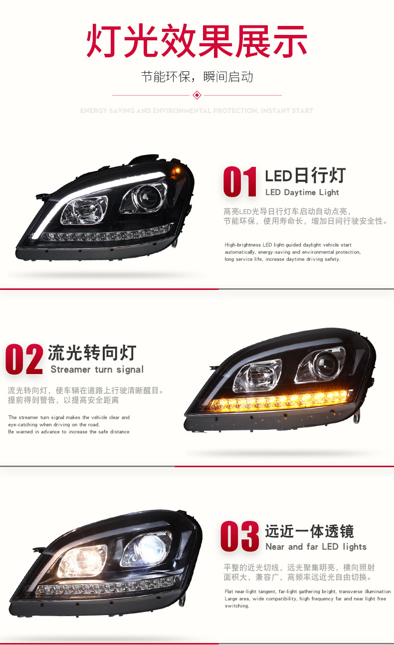 LED DRL Flowing Turn Signal Headlight Assembly for Mercedes-Benz W164 ML350 ML500 (2005-2008)