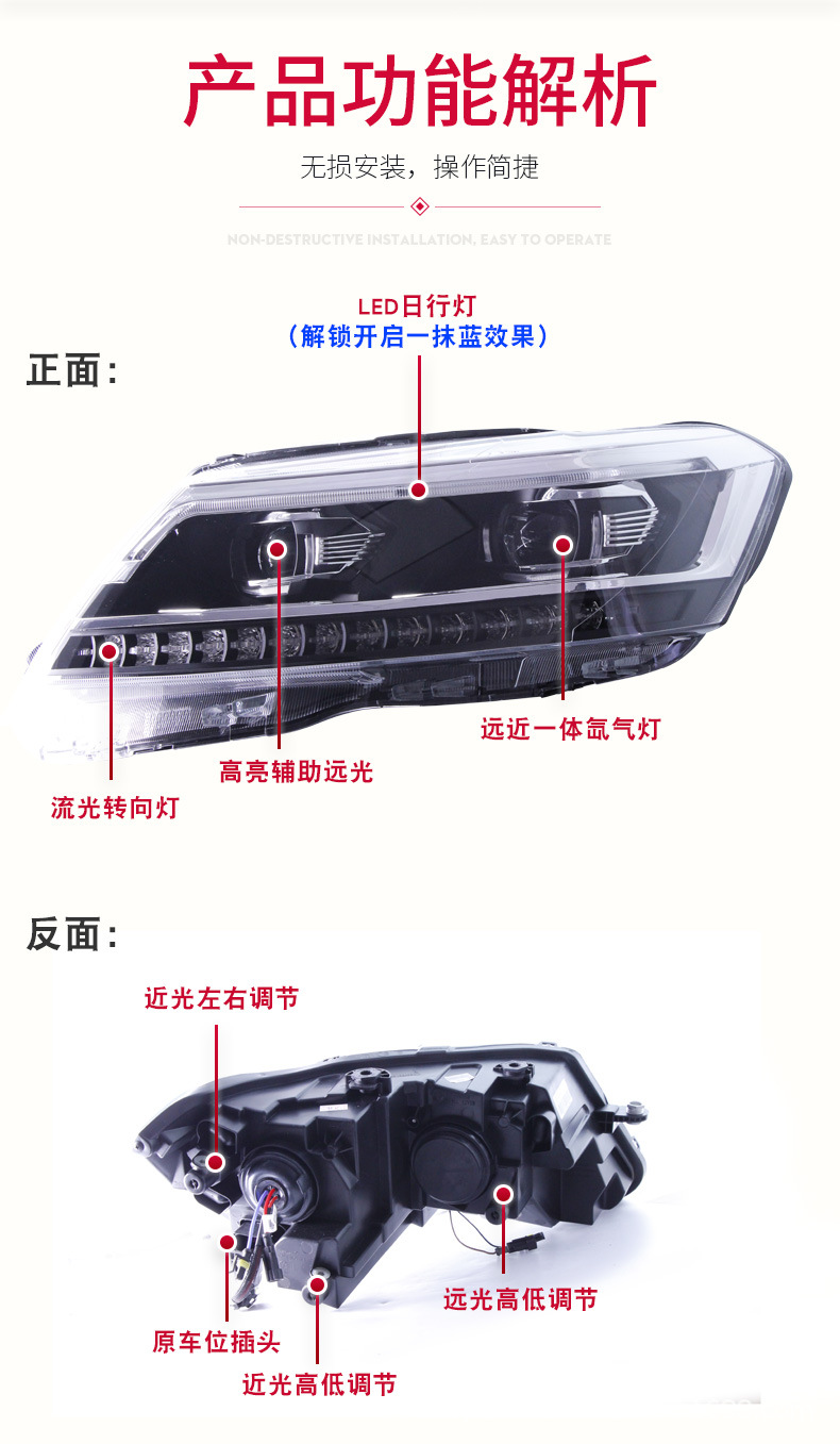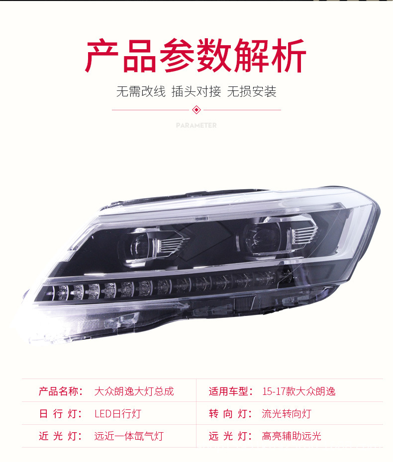 - Precise Fitment: Engineered specifically for VW Lavida (2015-2018), Gran Lavida (2015-2018), and Gran Santana (2015-2018) models, ensuring a perfect, direct-fit replacement for your original headlight assembly.