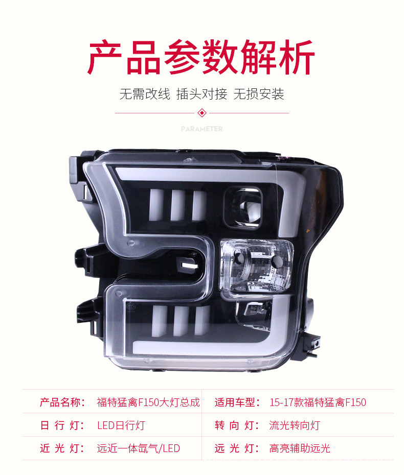 LED DRL Flowing Turn Signal Headlight Assembly for Ford F-150 Raptor (2015-2017)