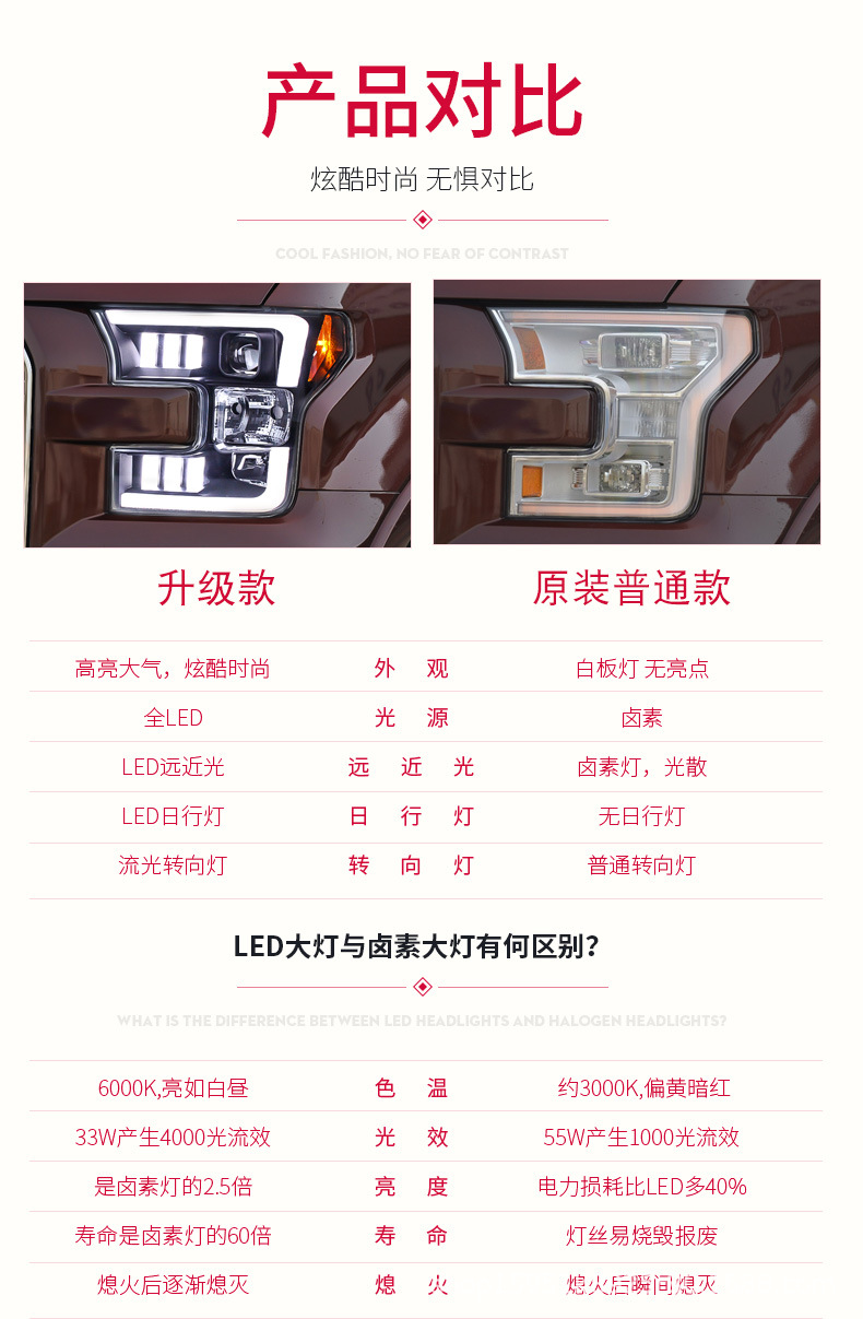 - Modern Styling: Features integrated LED Daytime Running Lights (DRL) and dynamic flowing turn signals, significantly upgrading your vehicle’s aesthetic with a contemporary and aggressive look.
