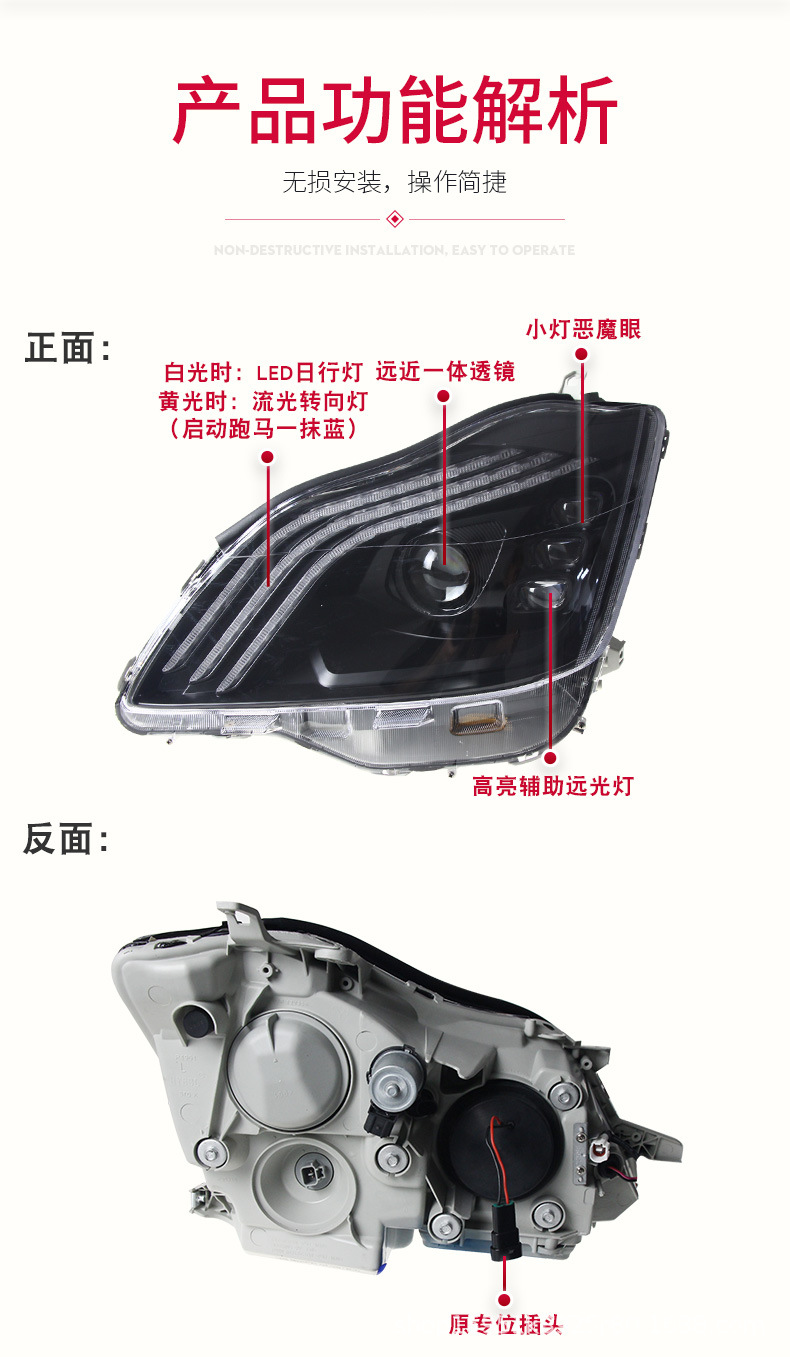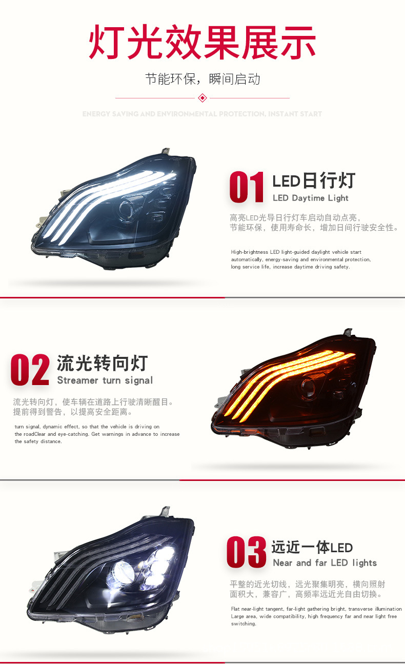 - Modern LED Lighting: Features integrated LED Daytime Running Lights (DRL) and dynamic flowing turn signals, significantly improving vehicle visibility and adding a stylish, modern aesthetic to your vehicle.