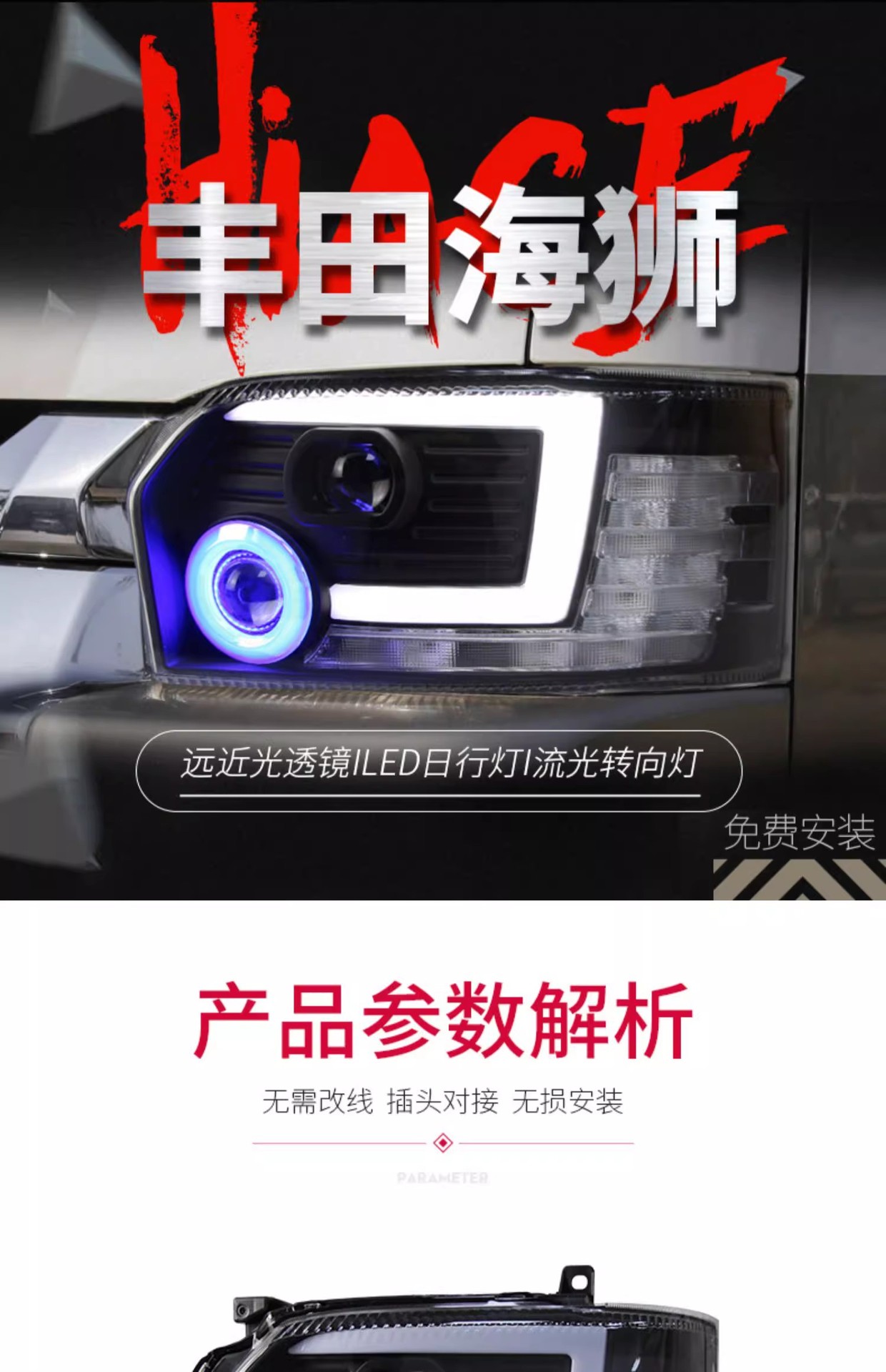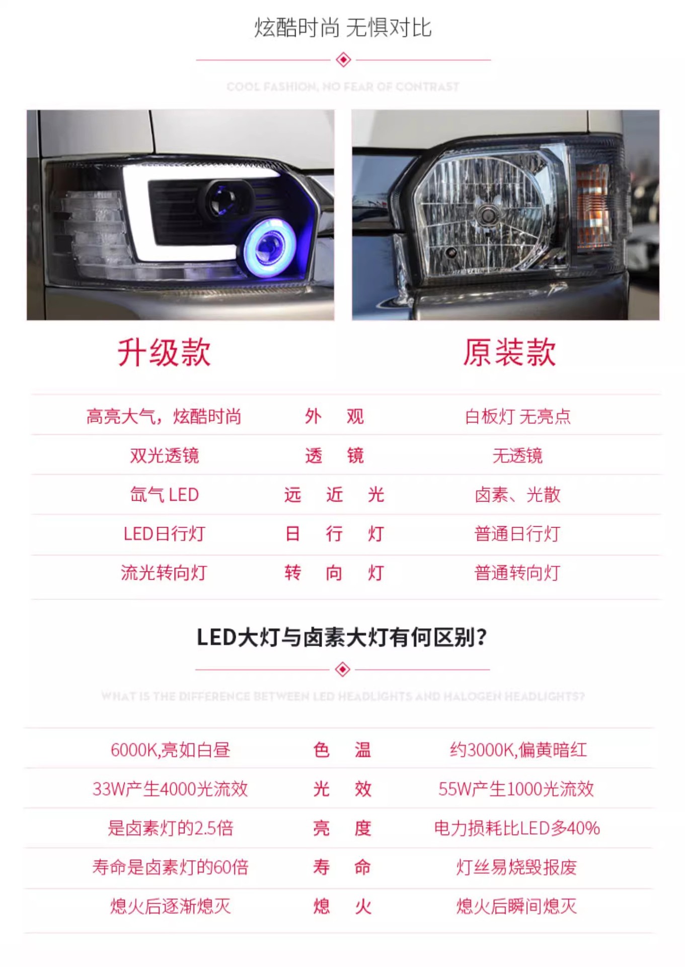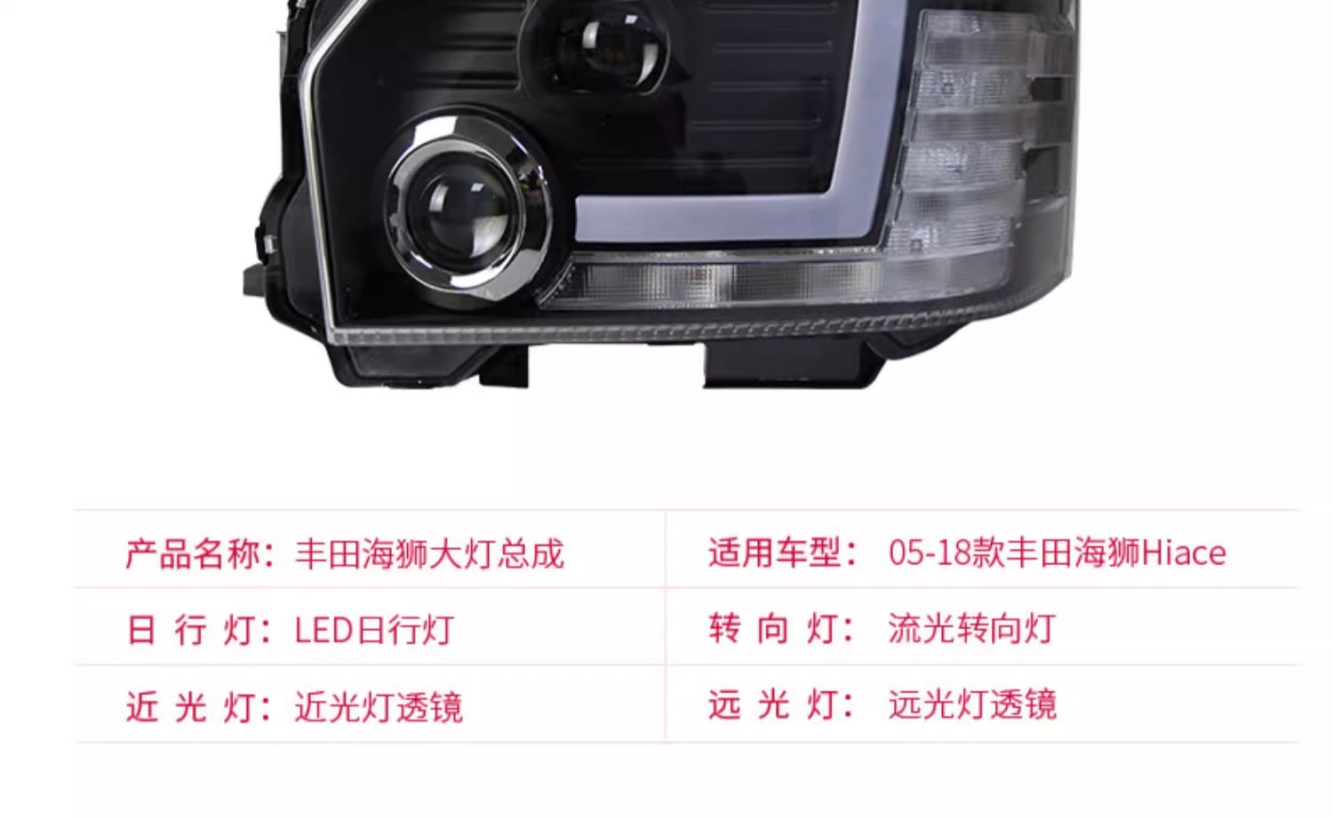 LED DRL Flowing Turn Signal Headlight Assembly for Toyota Hiace 2005-2018