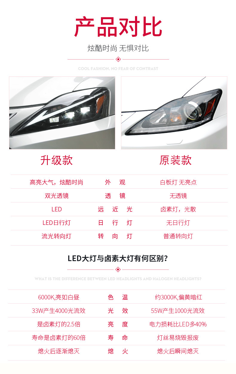 LED DRL Flowing Turn Signal Headlight Assembly for Lexus IS250 IS300 (2006-2012)