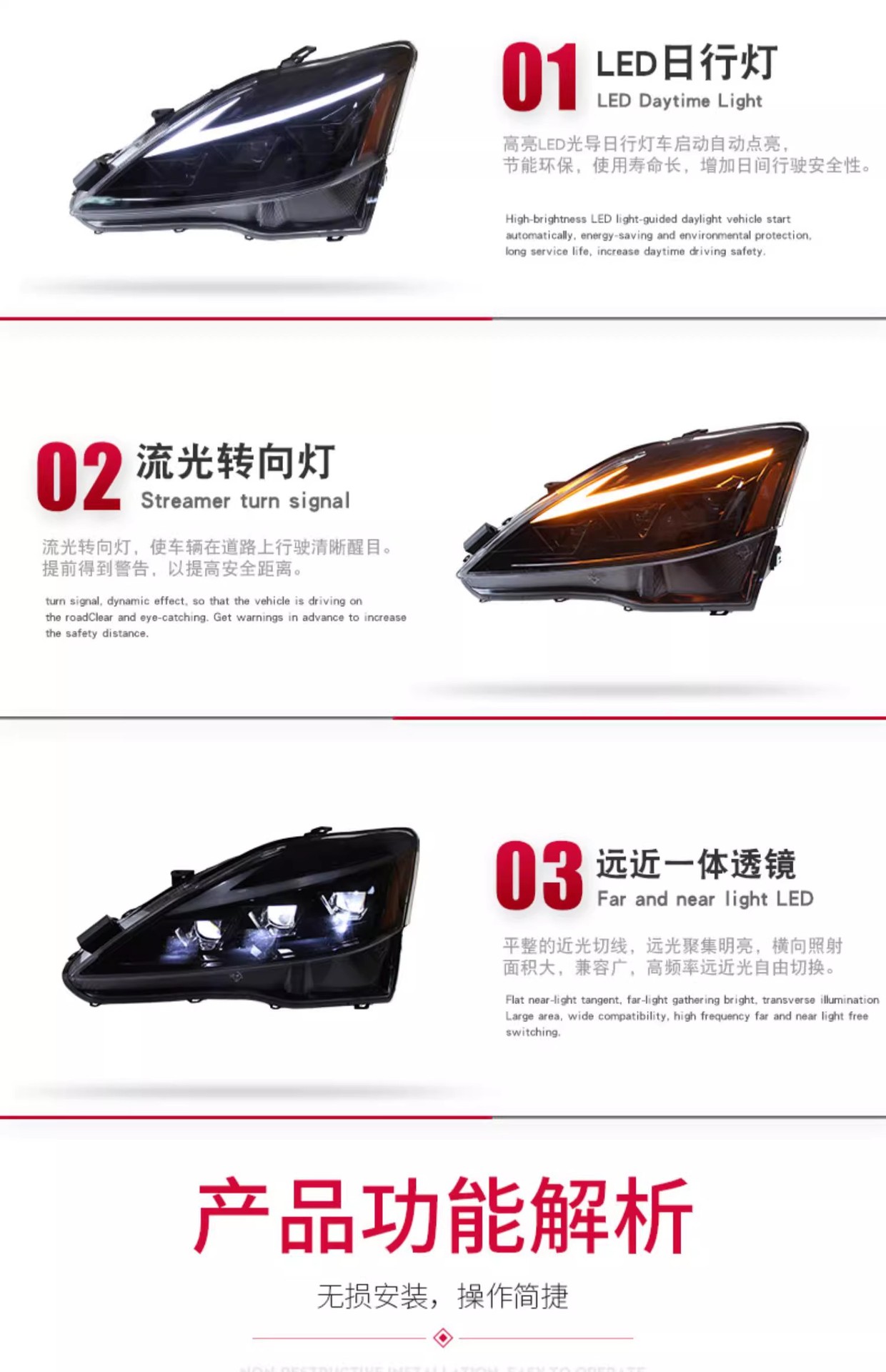 - Package Contents & Value: Single side LED headlight assembly for Lexus IS250/IS300, offering a significant visual and functional upgrade to your vehicle’s lighting system.