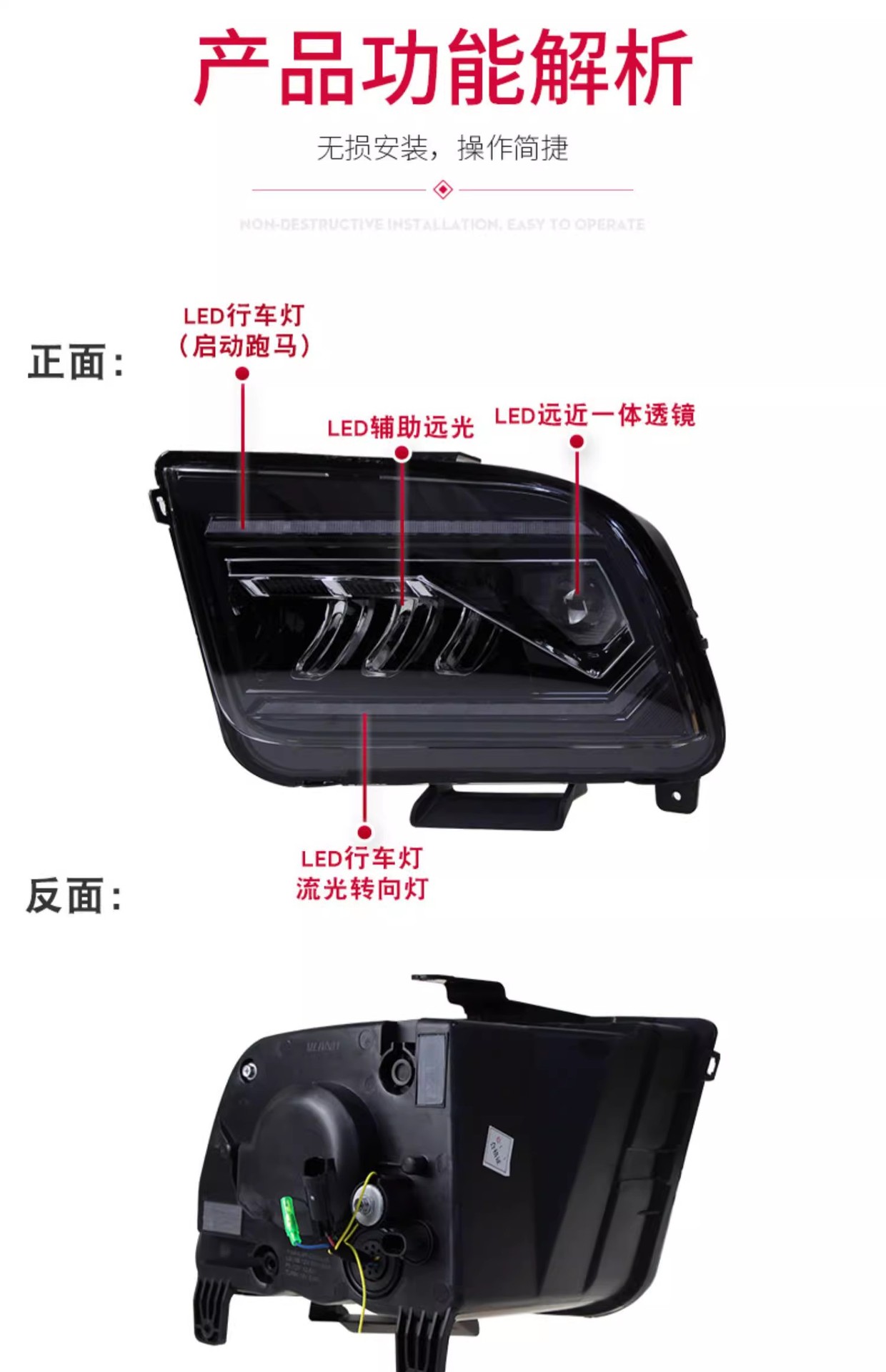 - Enhanced Aesthetics & Style: Upgrade your Mustang’s appearance with modern LED Daytime Running Lights (DRL) and dynamic flowing turn signals. Adds a stylish and distinctive look to your vehicle, making it stand out.