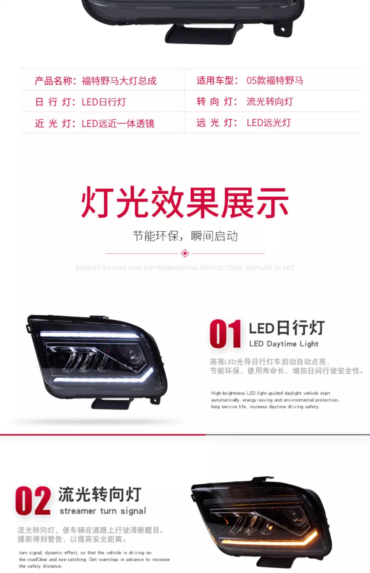 LED DRL Flowing Turn Signal Headlight Assembly for Ford Mustang 2005-2009