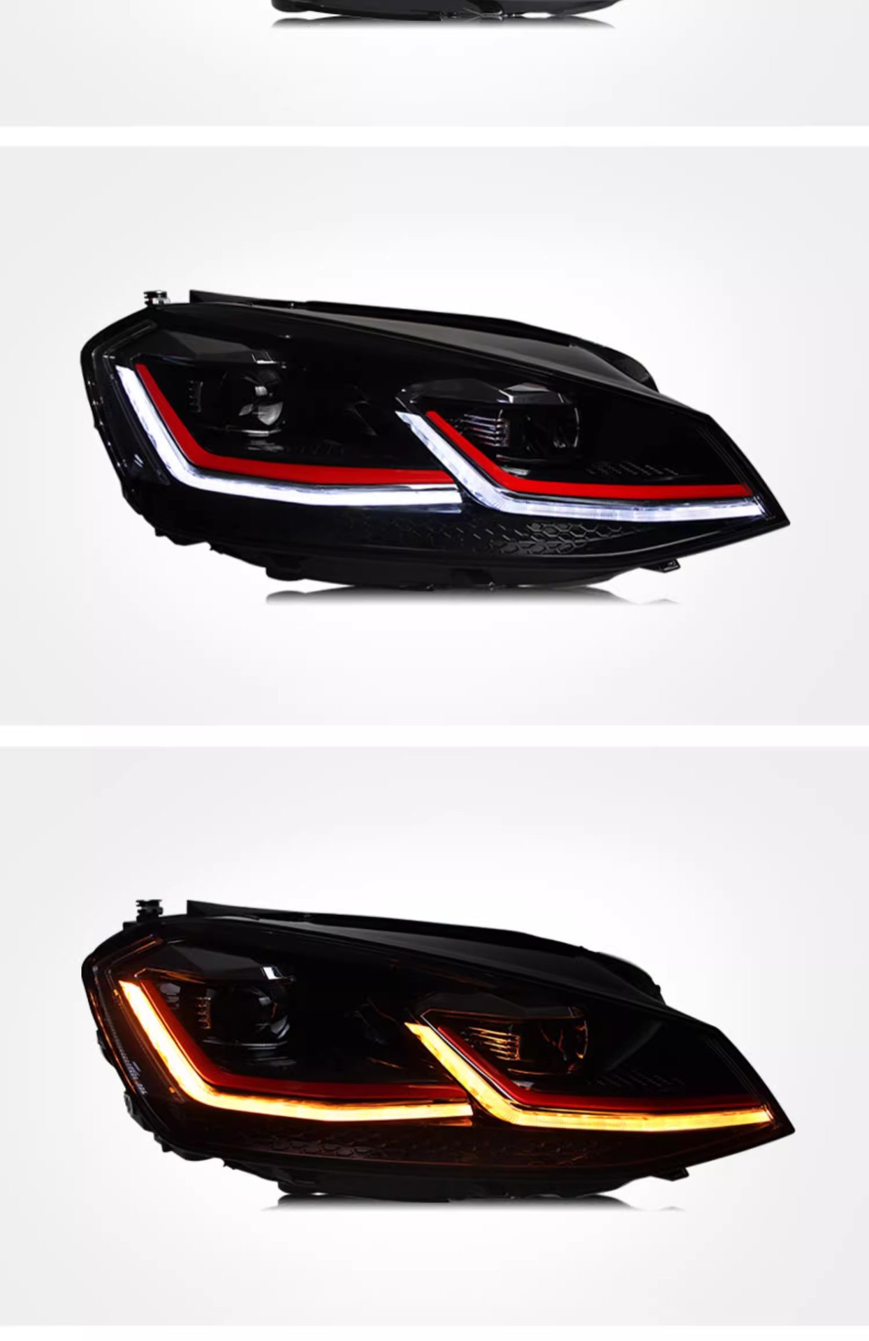 LED DRL Flowing Turn Signal Headlight Assembly with Projector Lens for Volkswagen Golf 7