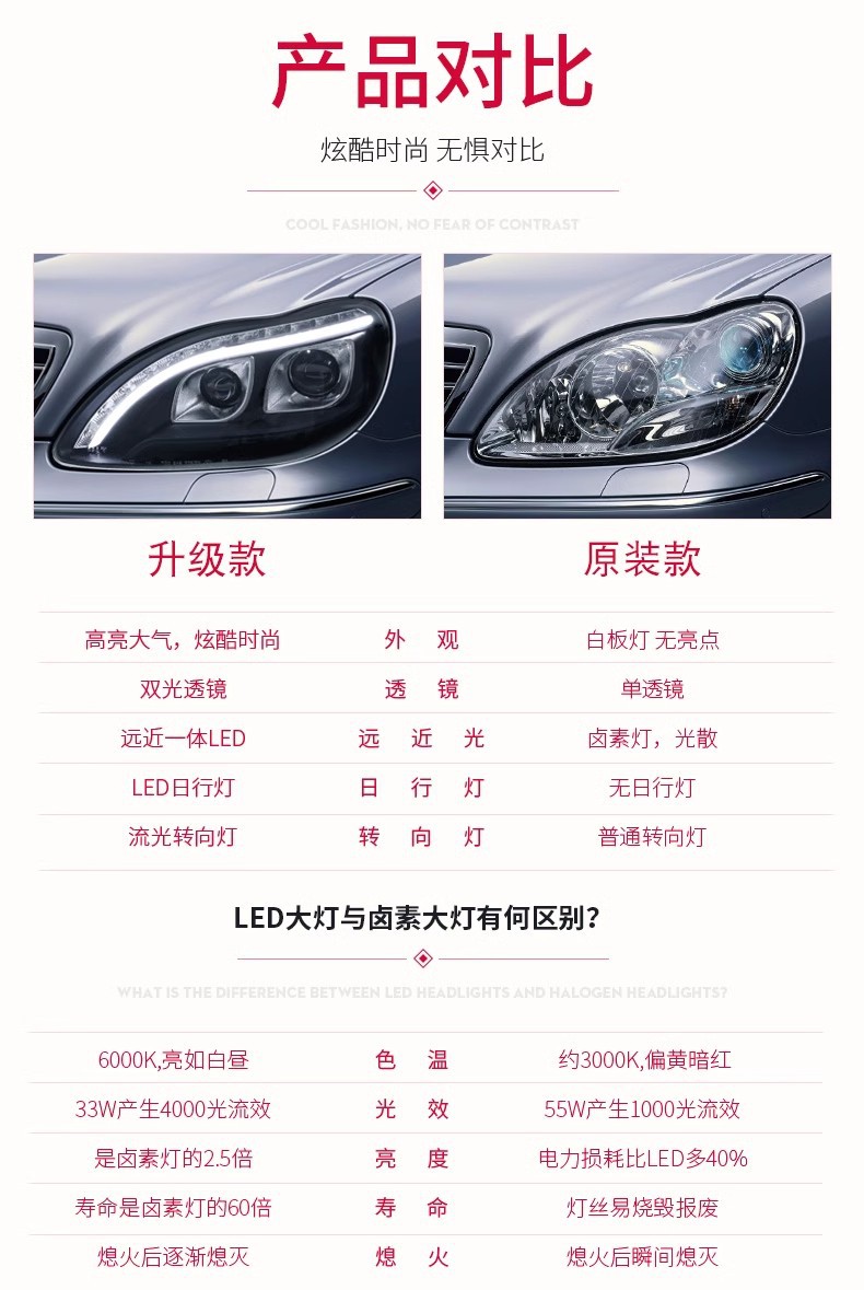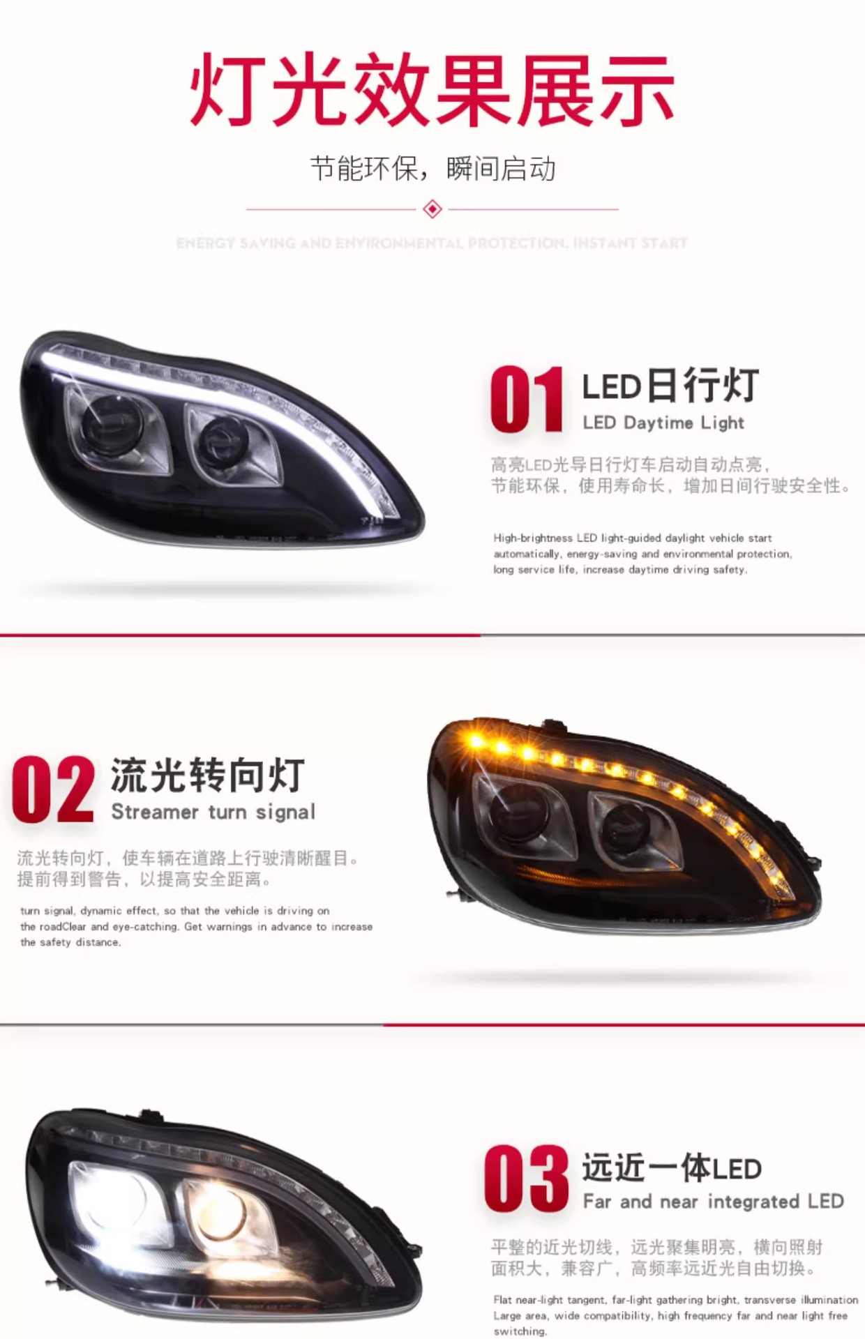 LED DRL Flowing Turn Signal Headlight Assembly for Mercedes-Benz S-Class W220 (2002-2005)