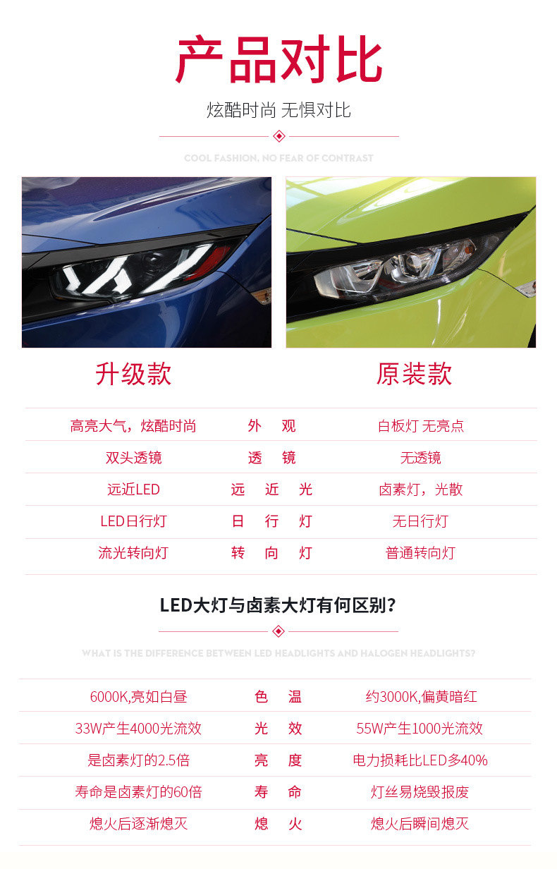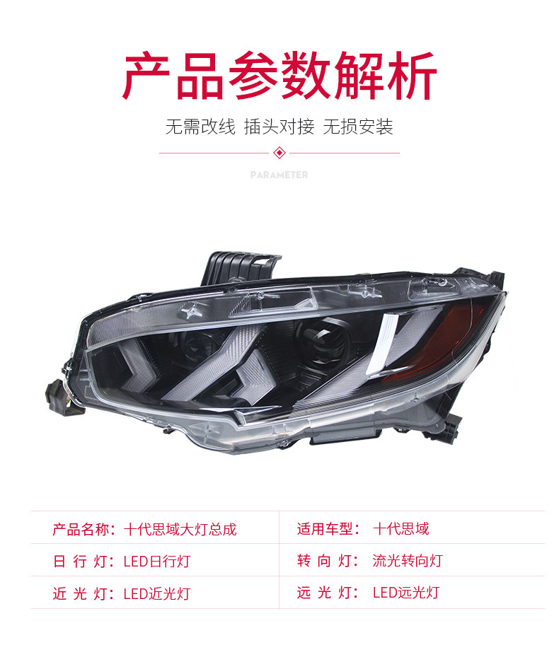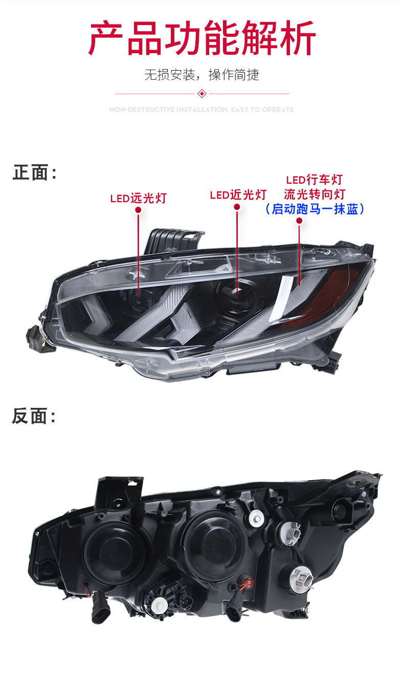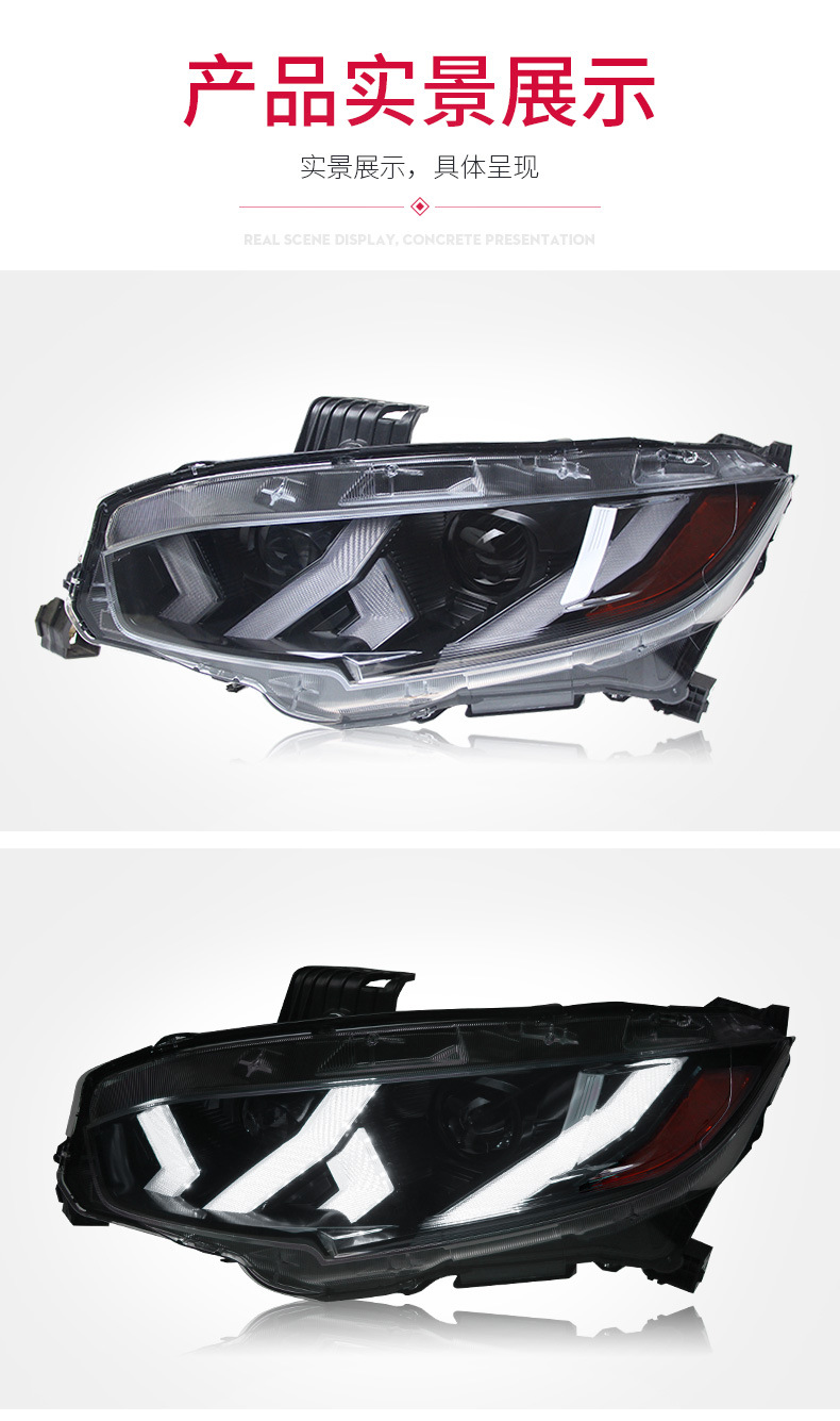 - Lamborghini Style Upgrade: Transform your Civic’s look with a distinctive Lamborghini-inspired design, including eye-catching LED daytime running lights (DRL) and dynamic sequential flowing turn signals.
