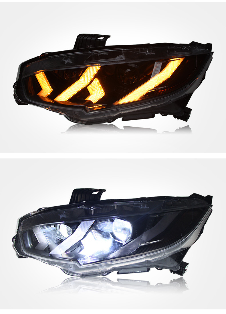 LED DRL Flowing Turn Signal Headlight Assembly for Honda Civic 10th Gen (2016-2021) Lamborghini Style