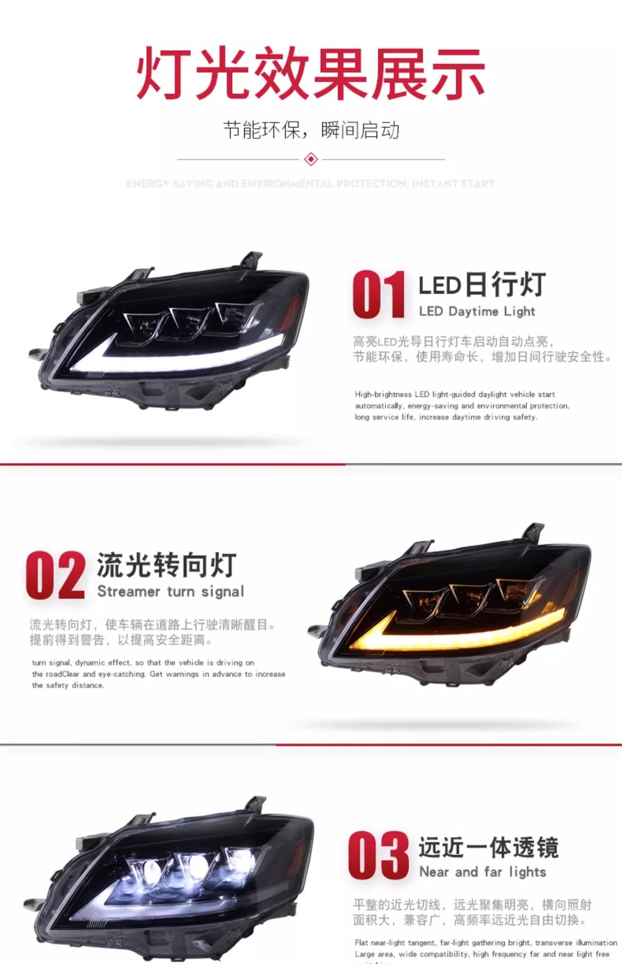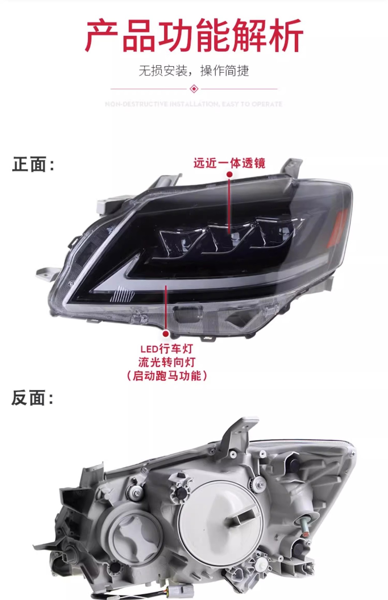 - Modern Aesthetics: Integrate stylish LED Day Running Lights (DRL) and dynamic flowing turn signals, significantly upgrading the front-end appearance of your vehicle.