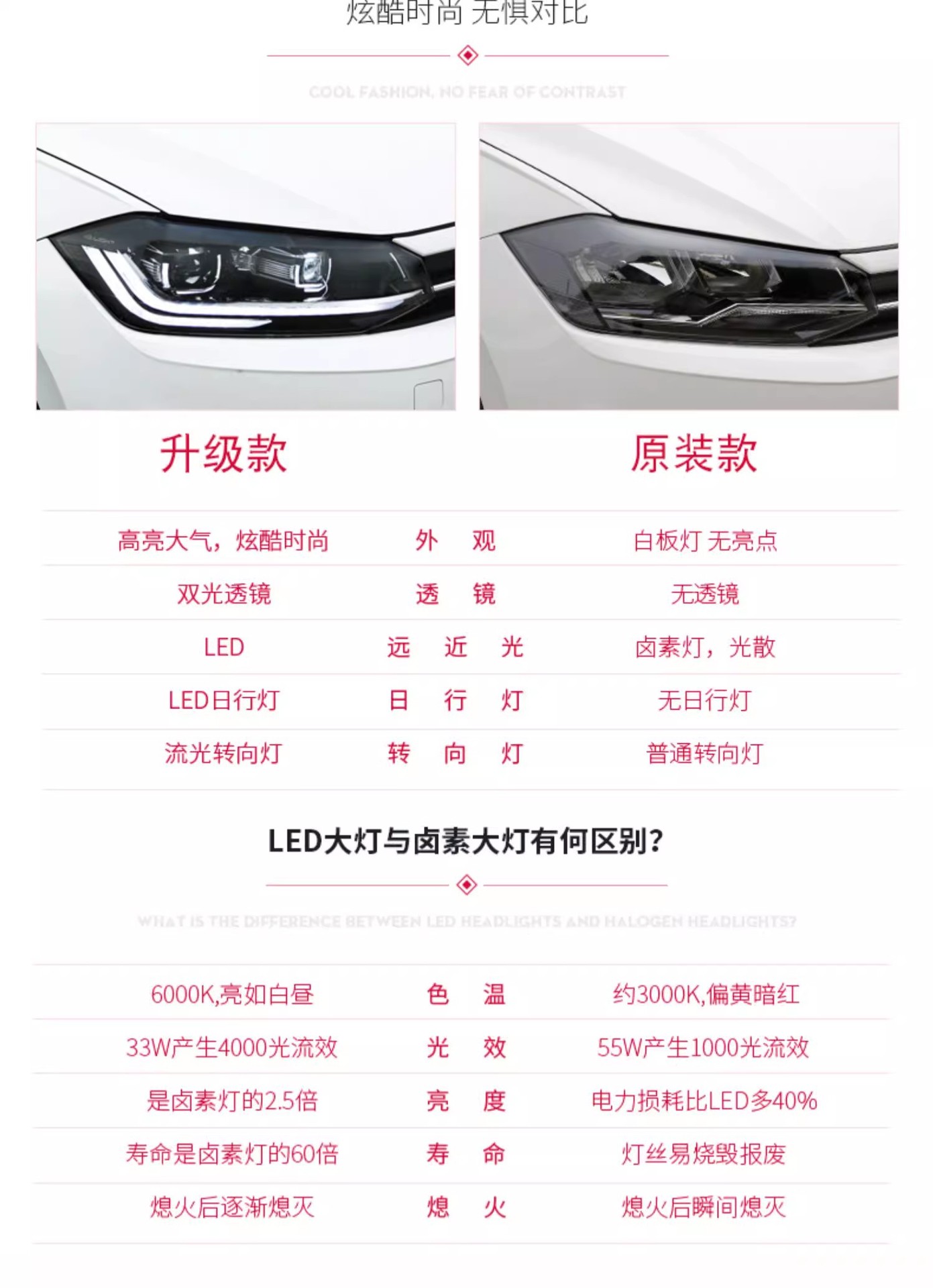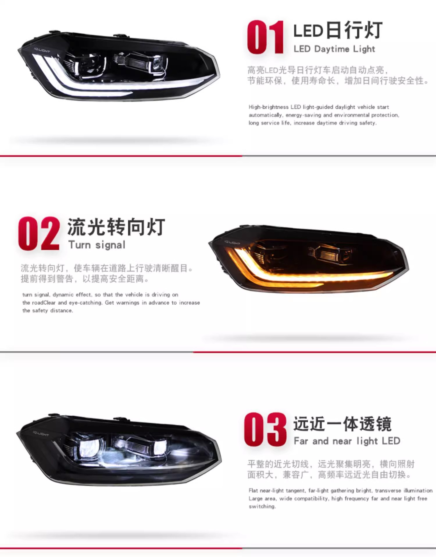 - Enhanced Aesthetic Appeal: Features integrated LED Daytime Running Lights (DRL) and dynamic flowing turn signals, upgrading your vehicle’s appearance with a modern, stylish look.