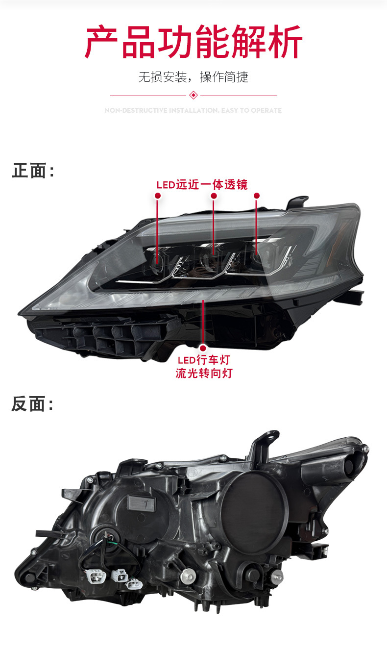 - Performance-Driven Design: Features LED Daytime Running Lights (DRL) and dynamic flowing turn signals, as shown, to improve visibility and modernize your vehicle’s appearance.
