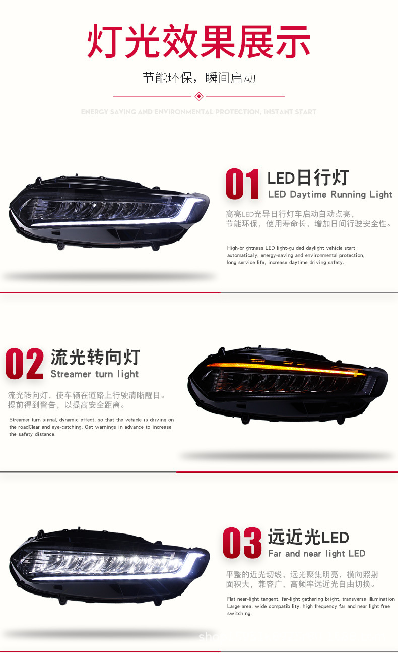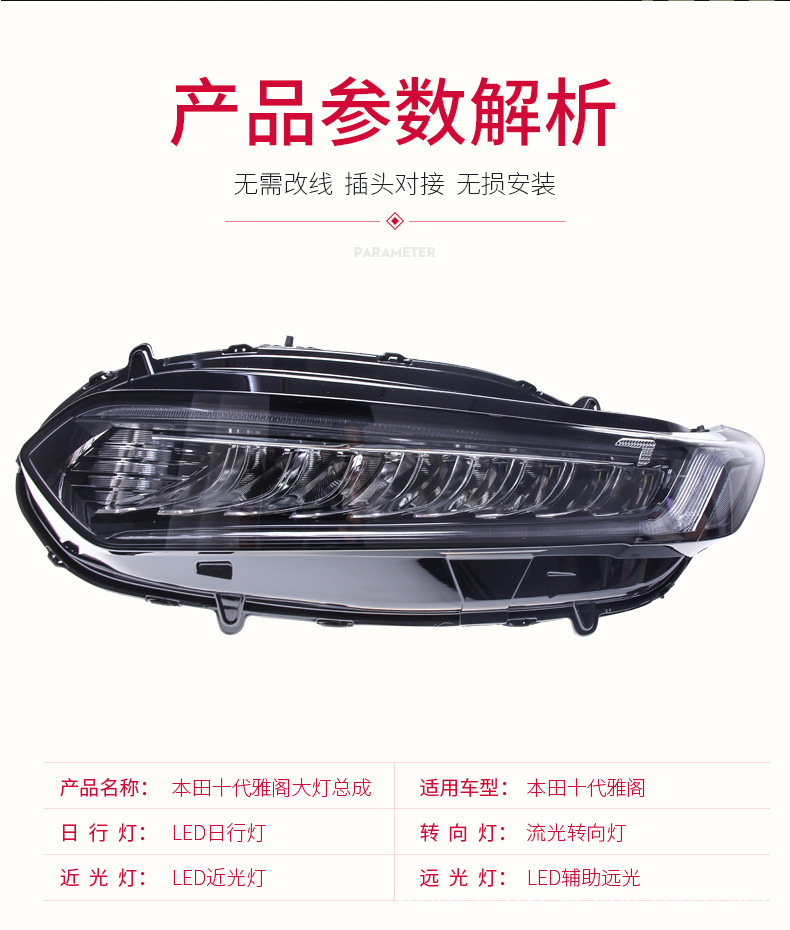 LED DRL Flowing Turn Signal LED Headlight Assembly for Honda Accord 10th Gen
