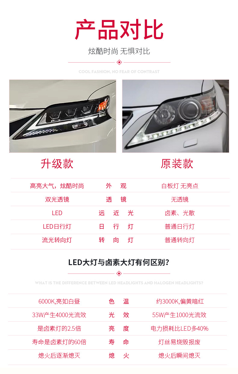 - Enhanced Visual Appeal: Features integrated LED Daytime Running Lights (DRL) and dynamic flowing turn signals, upgrading your vehicle’s aesthetic with a modern and distinctive look on the road.