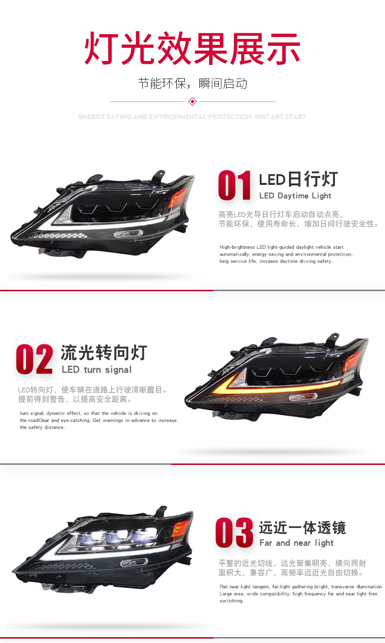 - Precise Fitment: Specifically designed for Lexus RX models from 2009 to 2015, ensuring a perfect, direct-fit replacement for your original headlights with no modifications needed.