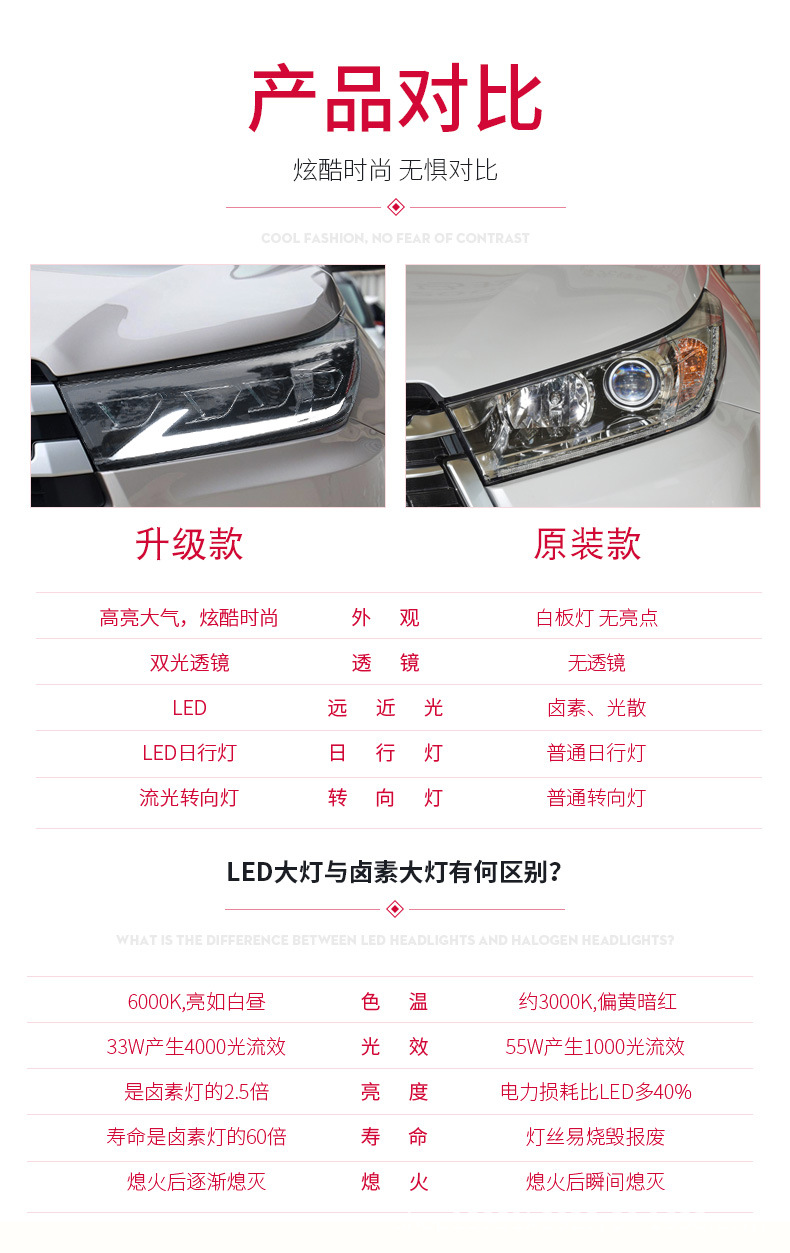 - Enhanced Aesthetics: Modern projector lens design and stylish LED DRLs give your Toyota Highlander a sleek, contemporary, and aggressive look, significantly improving its visual appeal and road presence.