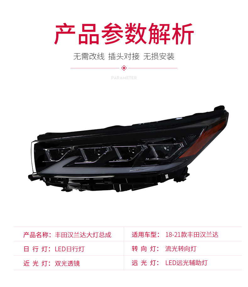 - Precise Fitment: Specifically designed for Toyota Highlander models from 2018 to 2021, ensuring a perfect, seamless integration with your vehicle’s existing structure and wiring. Upgrade your headlights with confidence.