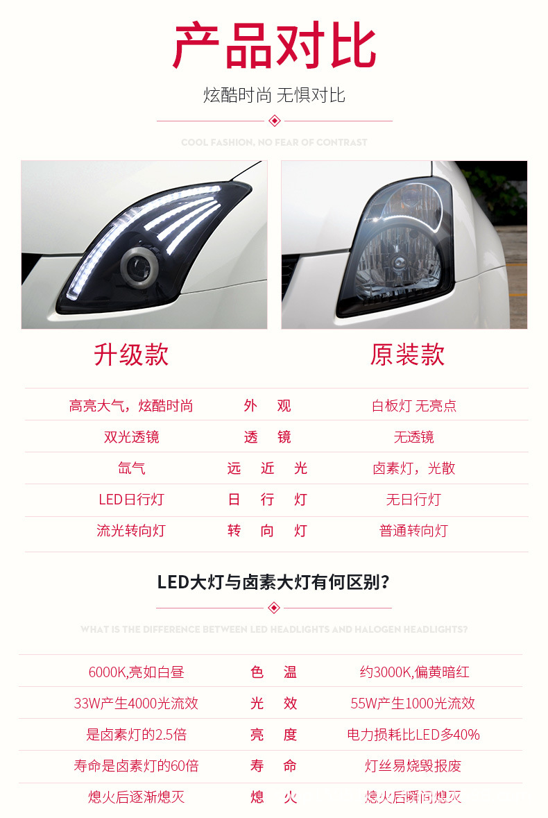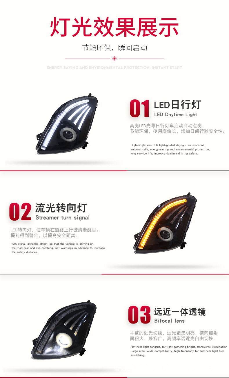 - Modern Aesthetic & Visibility: Features integrated LED Daytime Running Lights (DRL) and dynamic flowing turn signals, significantly enhancing your vehicle’s modern look and improving on-road visibility for safer driving.