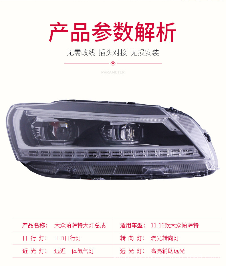 LED DRL Flowing Turn Signal Projector Xenon Headlight Assembly for Passat (2011-2016)