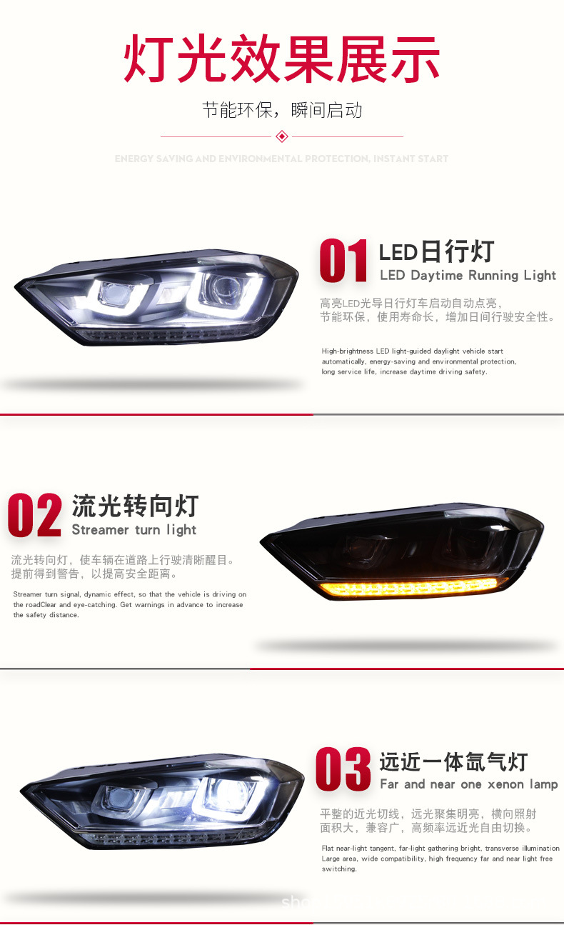 LED DRL Flowing Turn Signal Projector Xenon Headlight Assembly for Golf Sportsvan