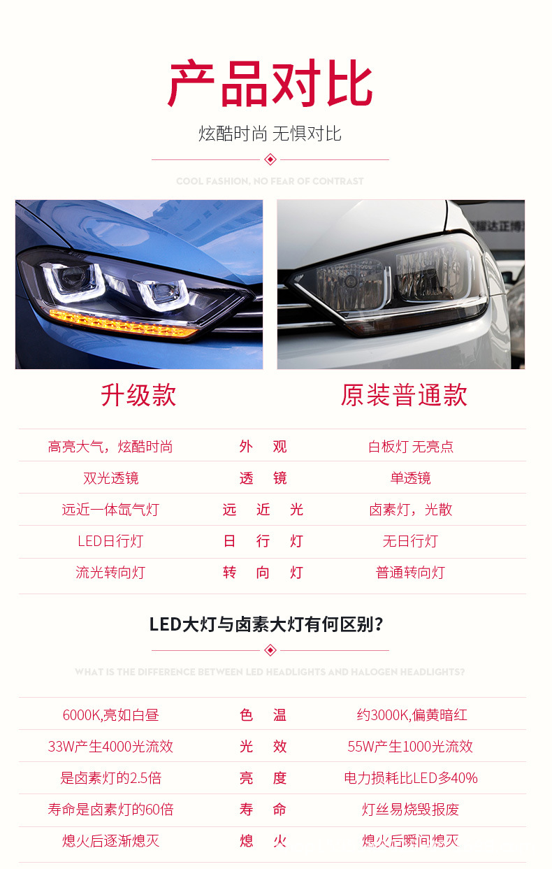 - Modern Aesthetic & Style: Features integrated LED Daytime Running Lights (DRL) with dynamic flowing turn signals, upgrading your vehicle’s appearance with a contemporary and sleek look.