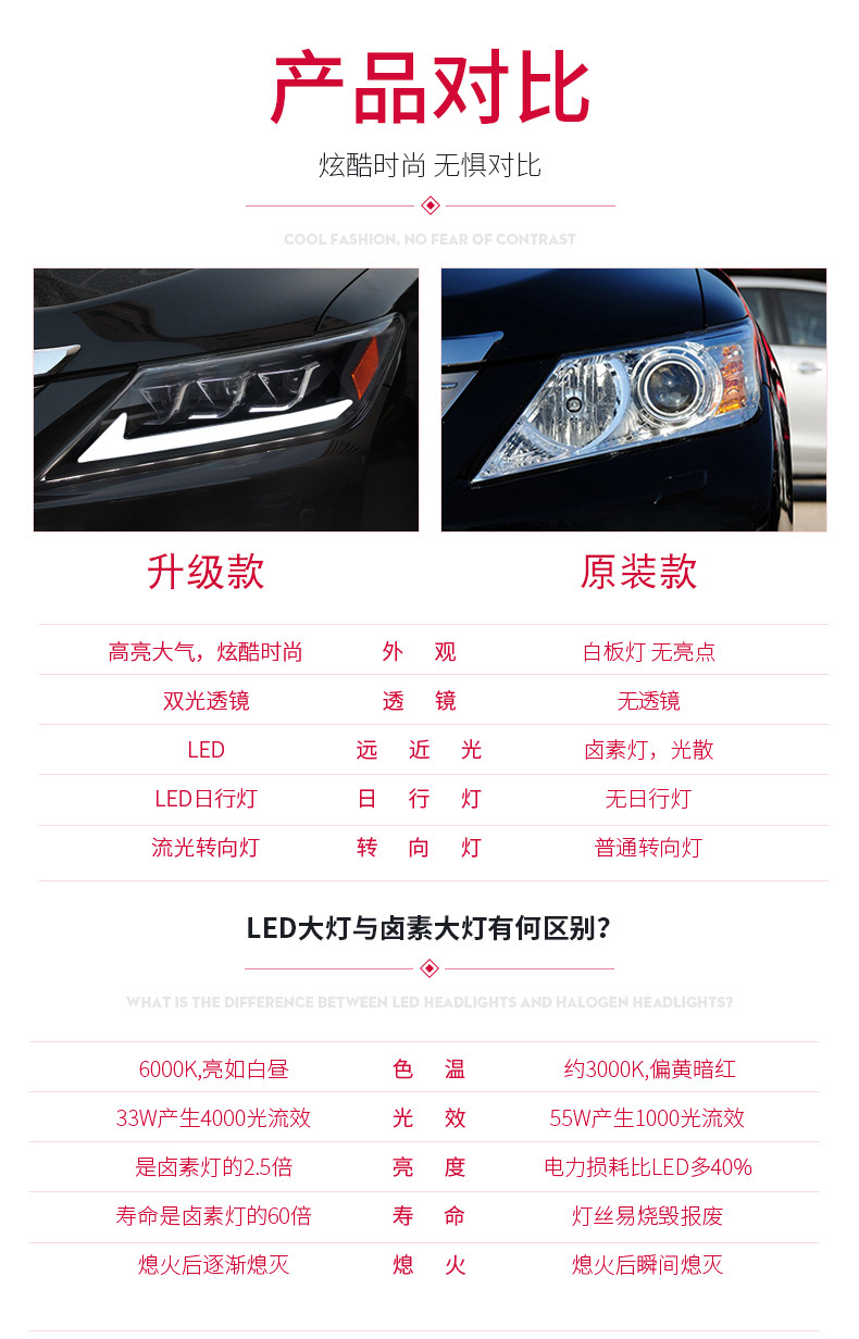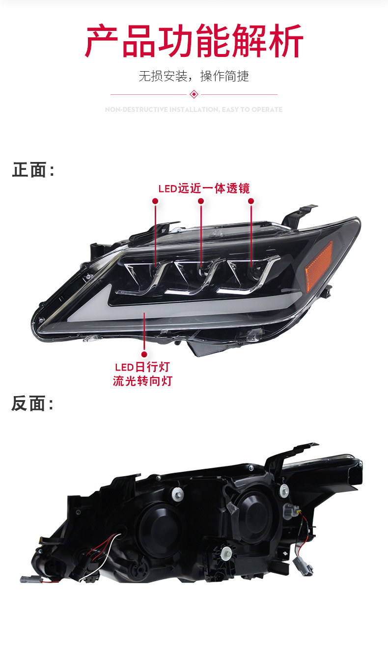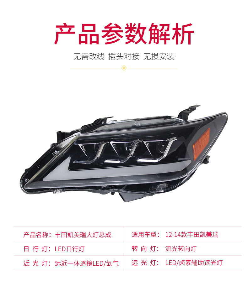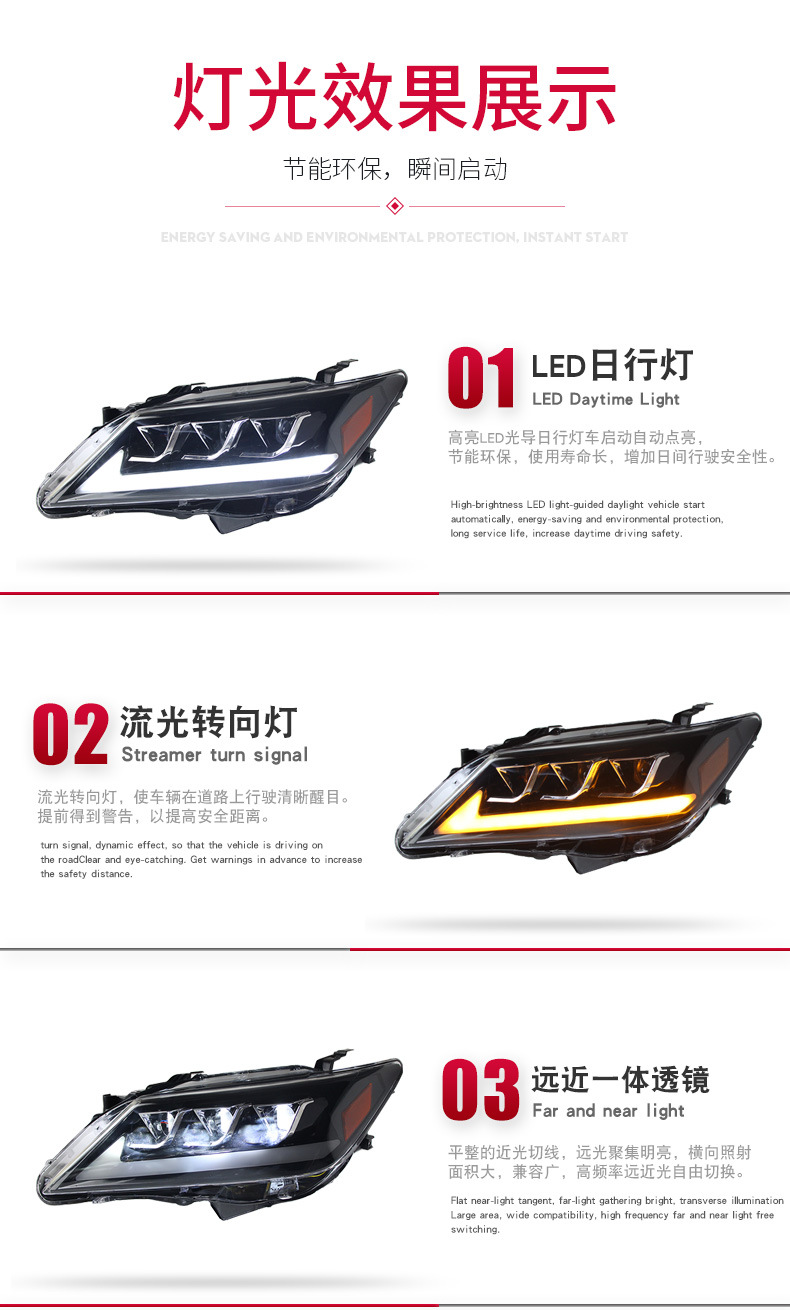LED DRL Flowing Turn Signal Projector Headlight Assembly for Toyota Camry (2012-2014)