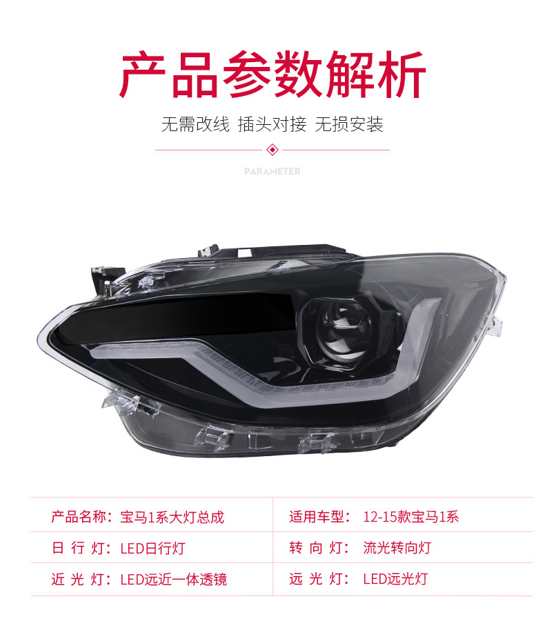 LED DRL Flowing Turn Signal Projector Headlight for BMW 1 Series F20 (2012-2015)
