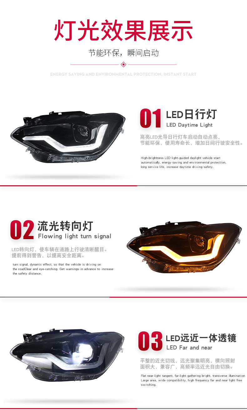- Premium LED Illumination: Features advanced LED technology for daytime running lights (DRL) and dynamic flowing turn signals, providing superior brightness, energy efficiency, and a modern aesthetic for enhanced visibility and safety.