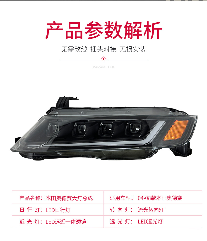LED DRL Flowing Turn Signal Projector Headlight Assembly for Honda Odyssey (2004-2008)
