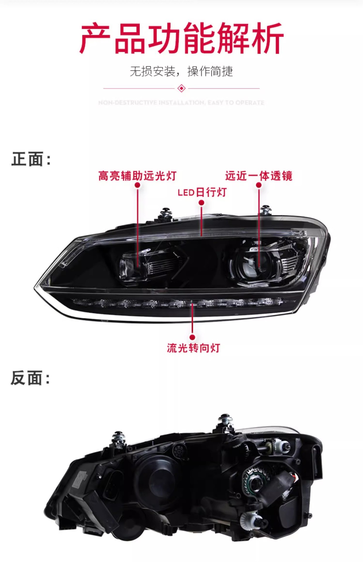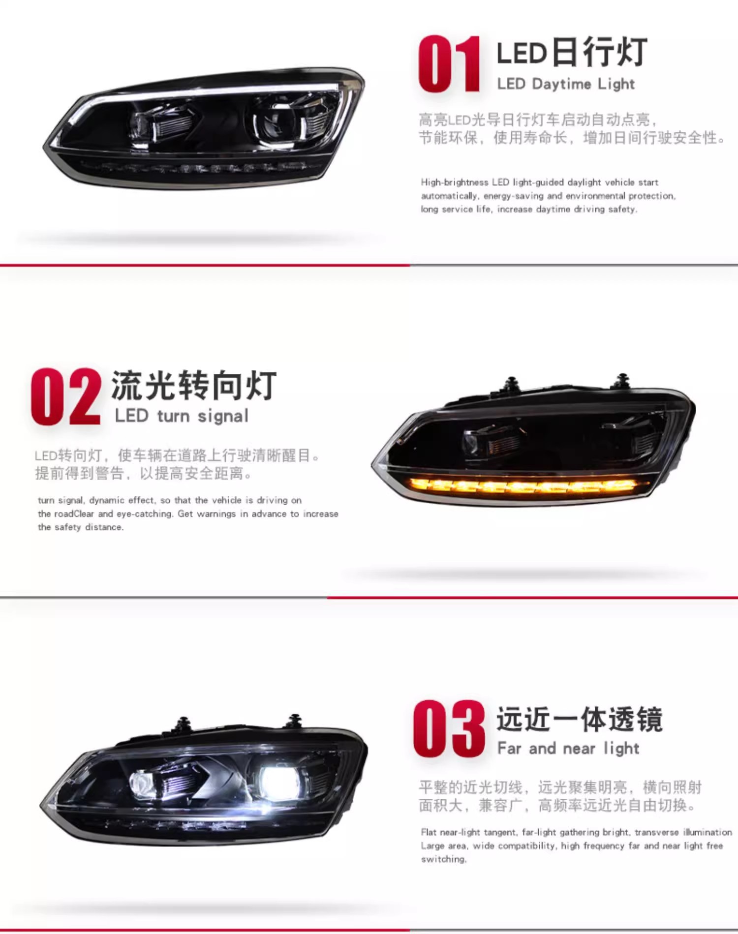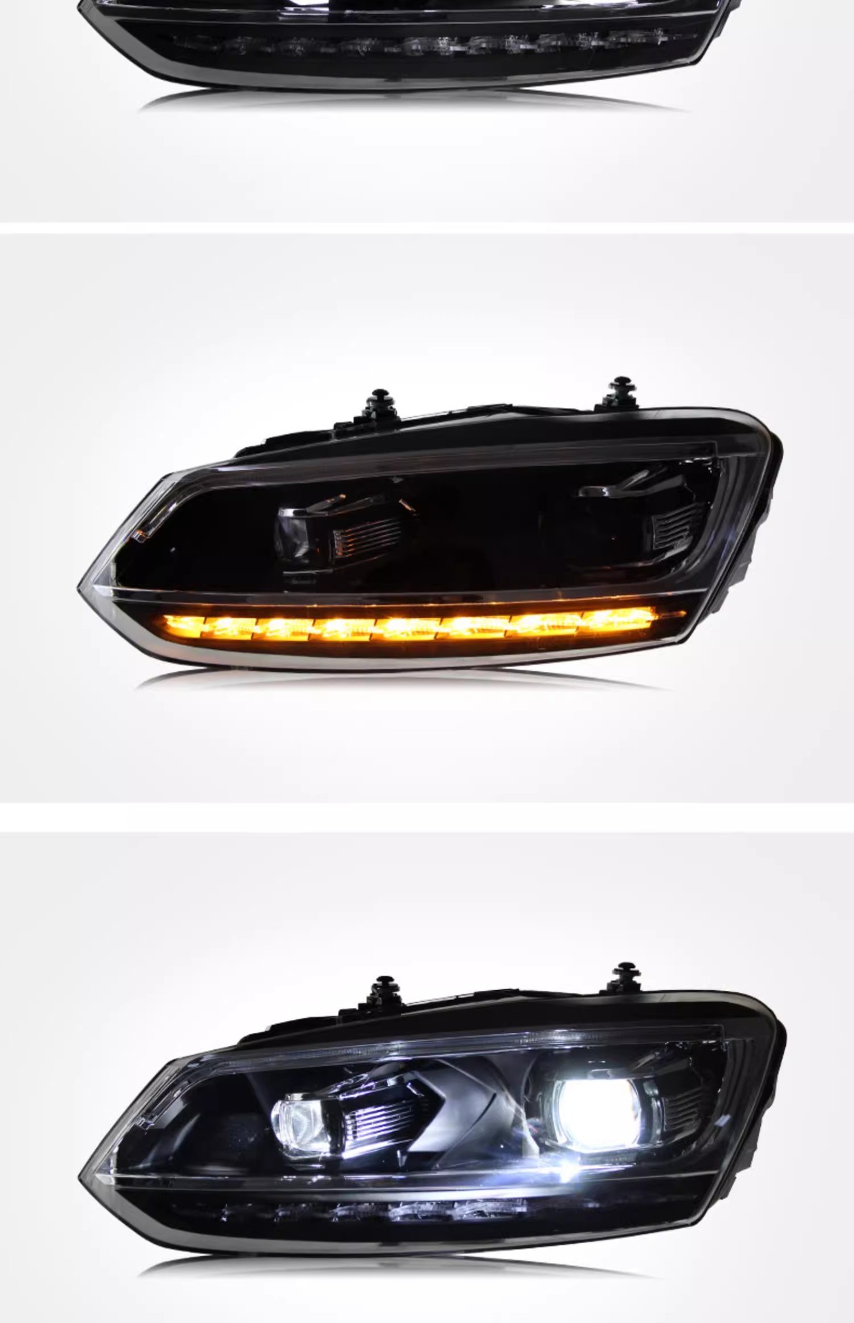 LED DRL Flowing Turn Signal Projector Headlight Assembly for VW Polo (2011-2018)