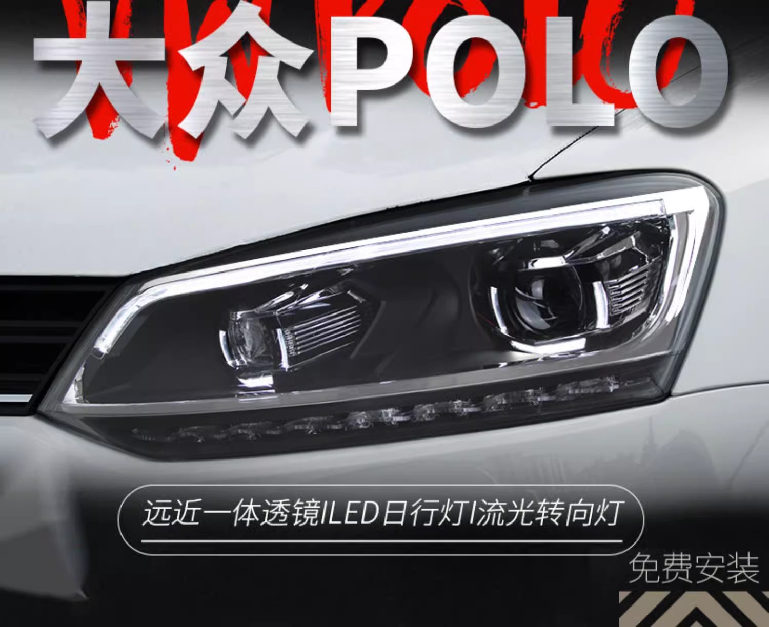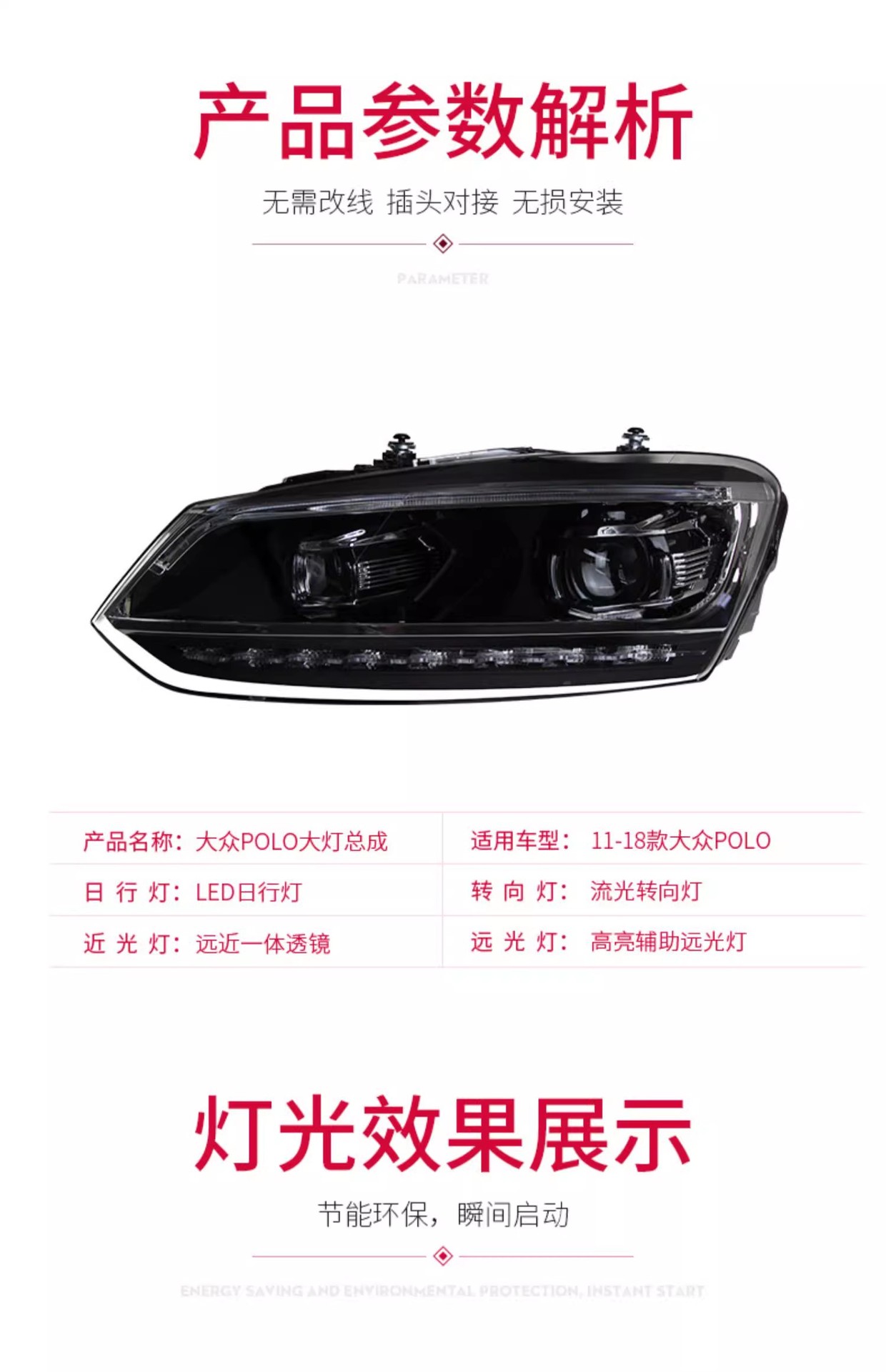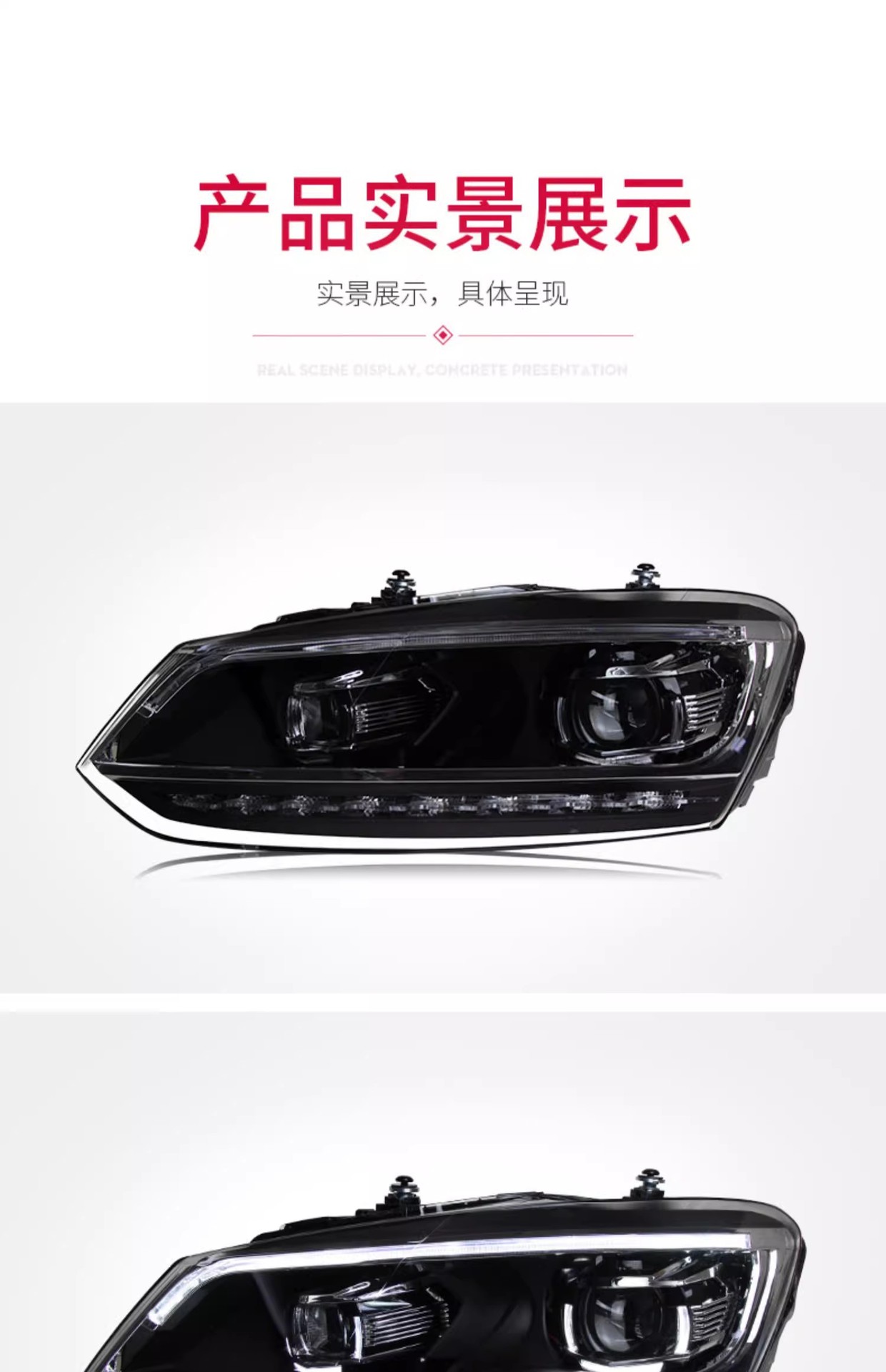LED DRL Flowing Turn Signal Projector Headlight Assembly for VW Polo (2011-2018)