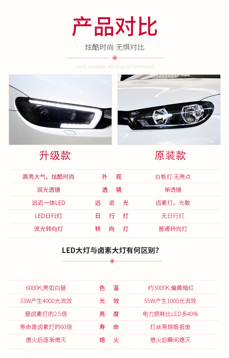 - Enhanced Aesthetics & Visibility: Features integrated LED daytime running lights (DRL) and dynamic flowing turn signals, alongside powerful xenon main beams, significantly upgrading your vehicle’s look and road presence.