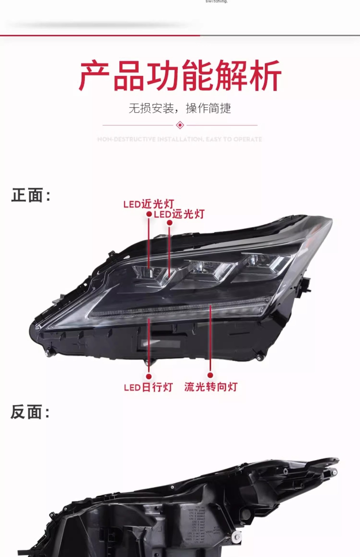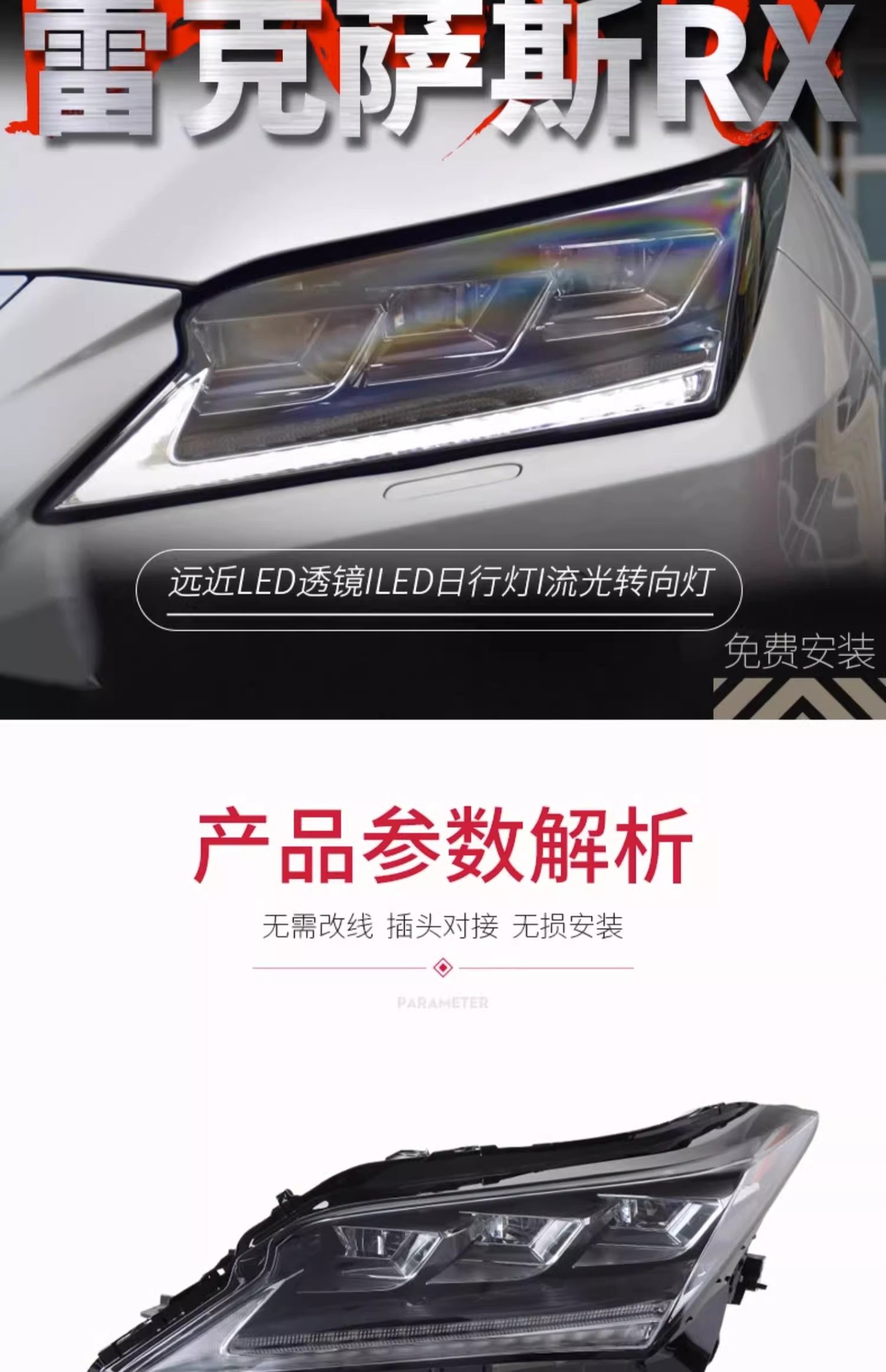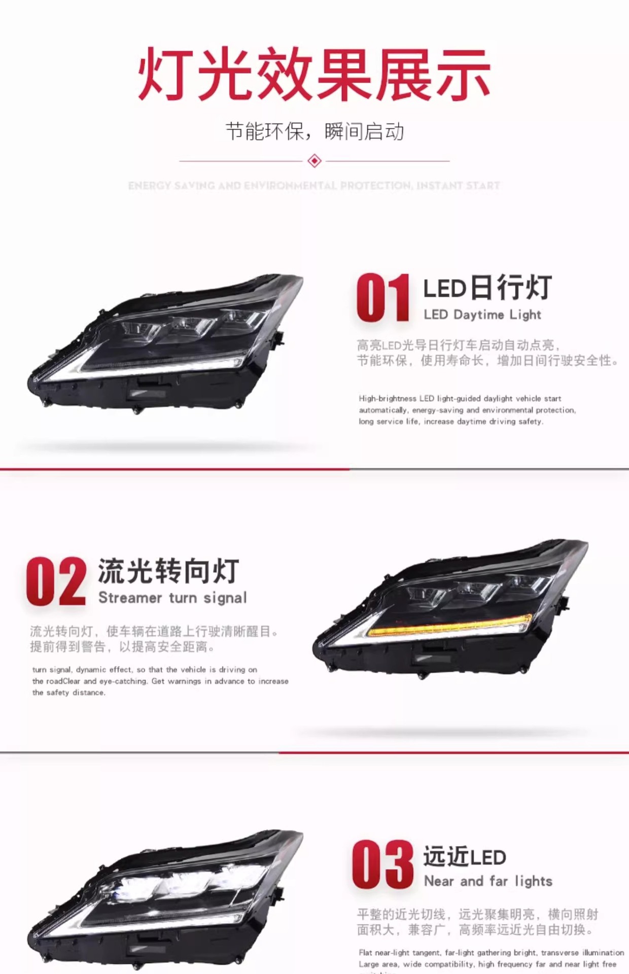 LED DRL Headlight Assembly Triple Beam Bi-LED Projector for Lexus RX 2016-2018
