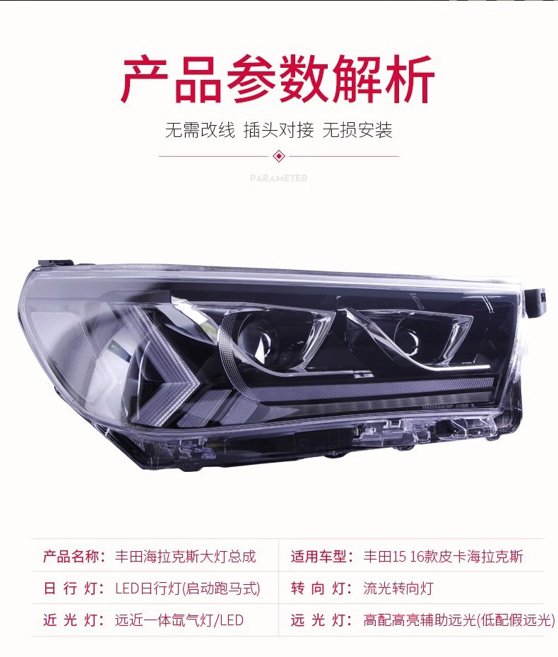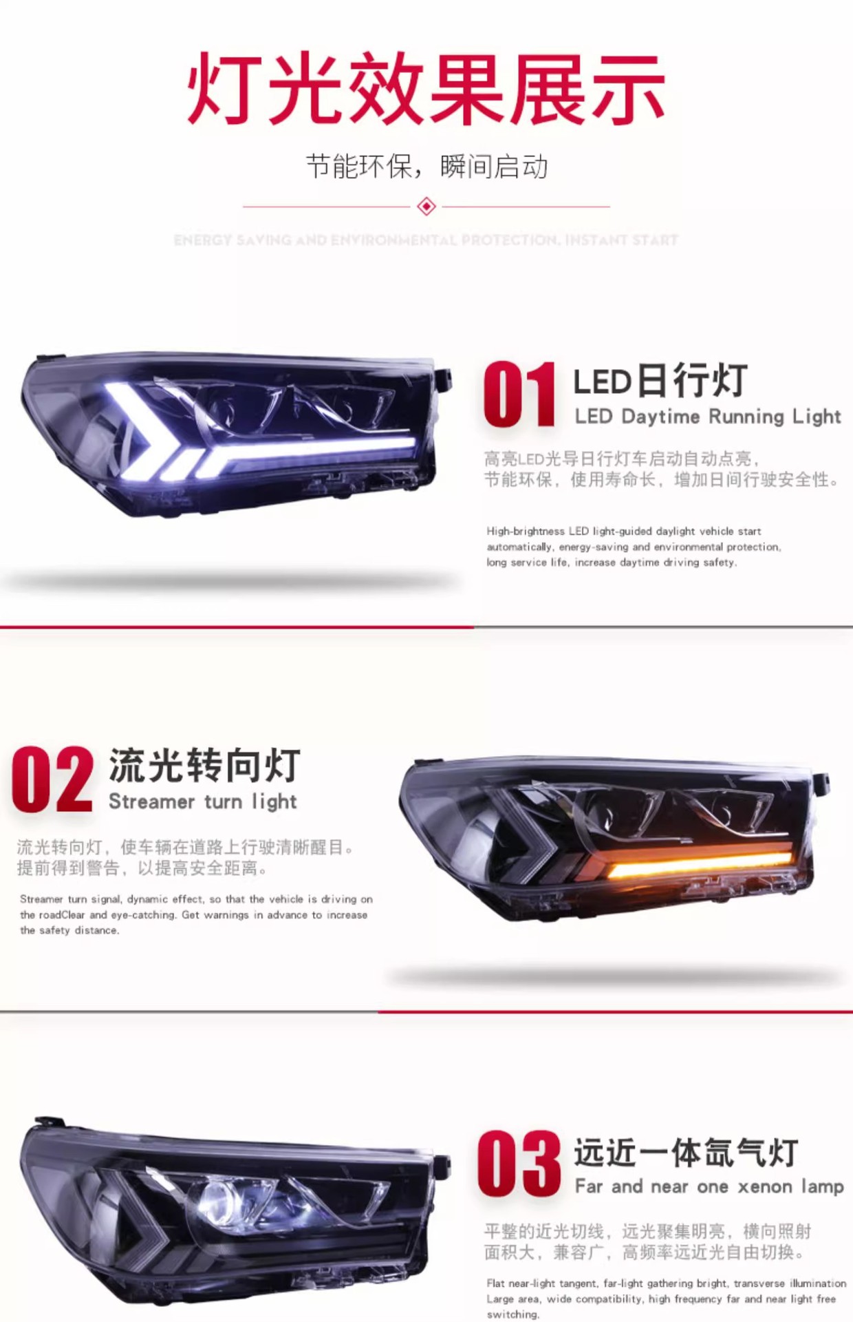 LED Daytime Running Light Headlight Assembly for Toyota Hilux Revo Vigo (2015-2020)