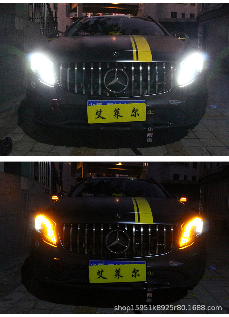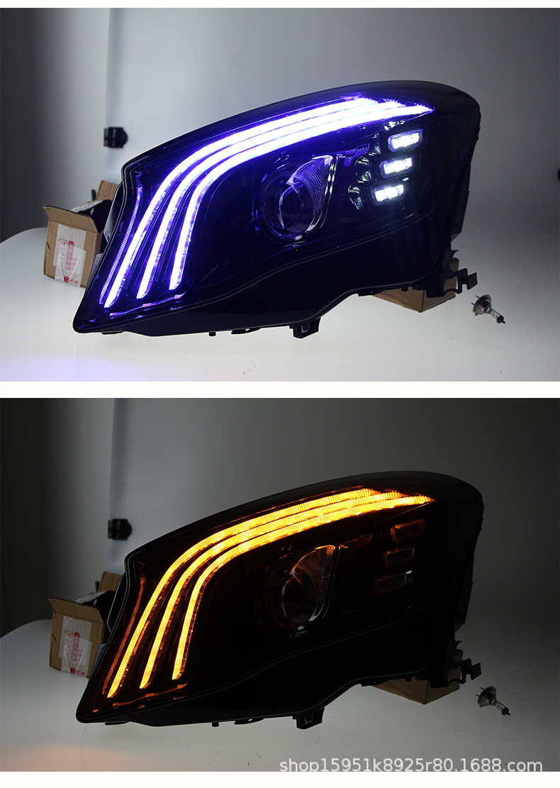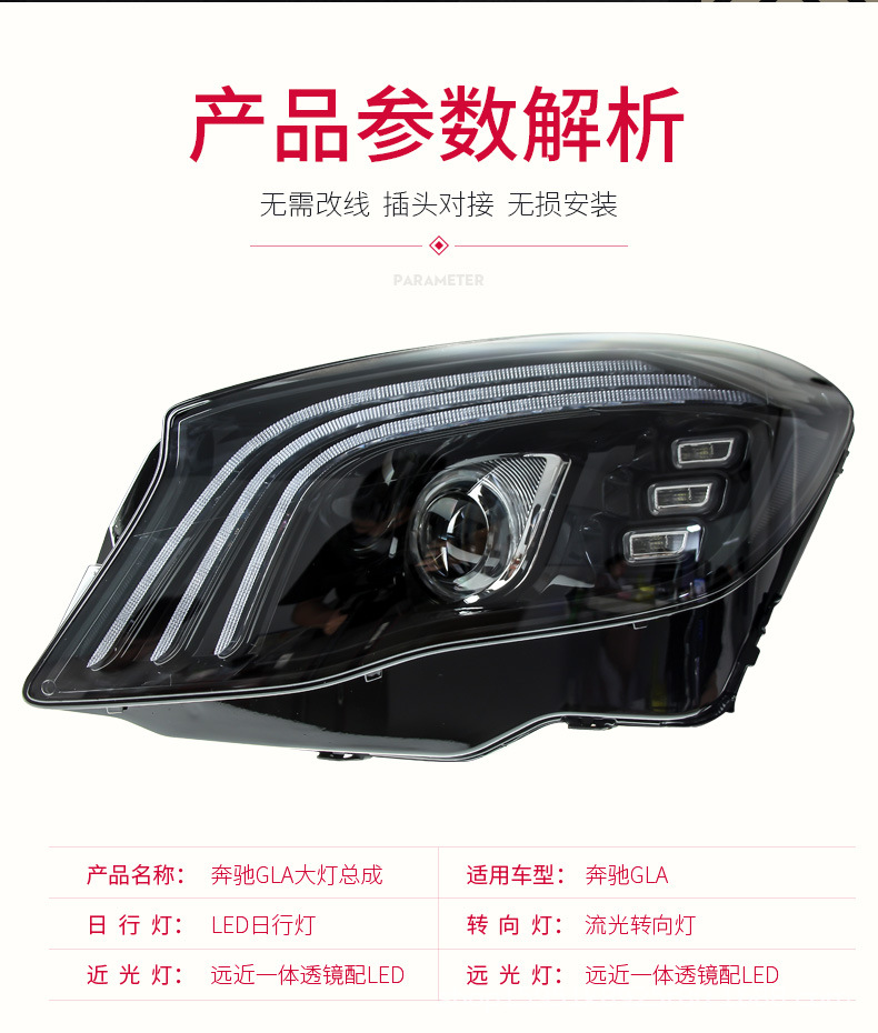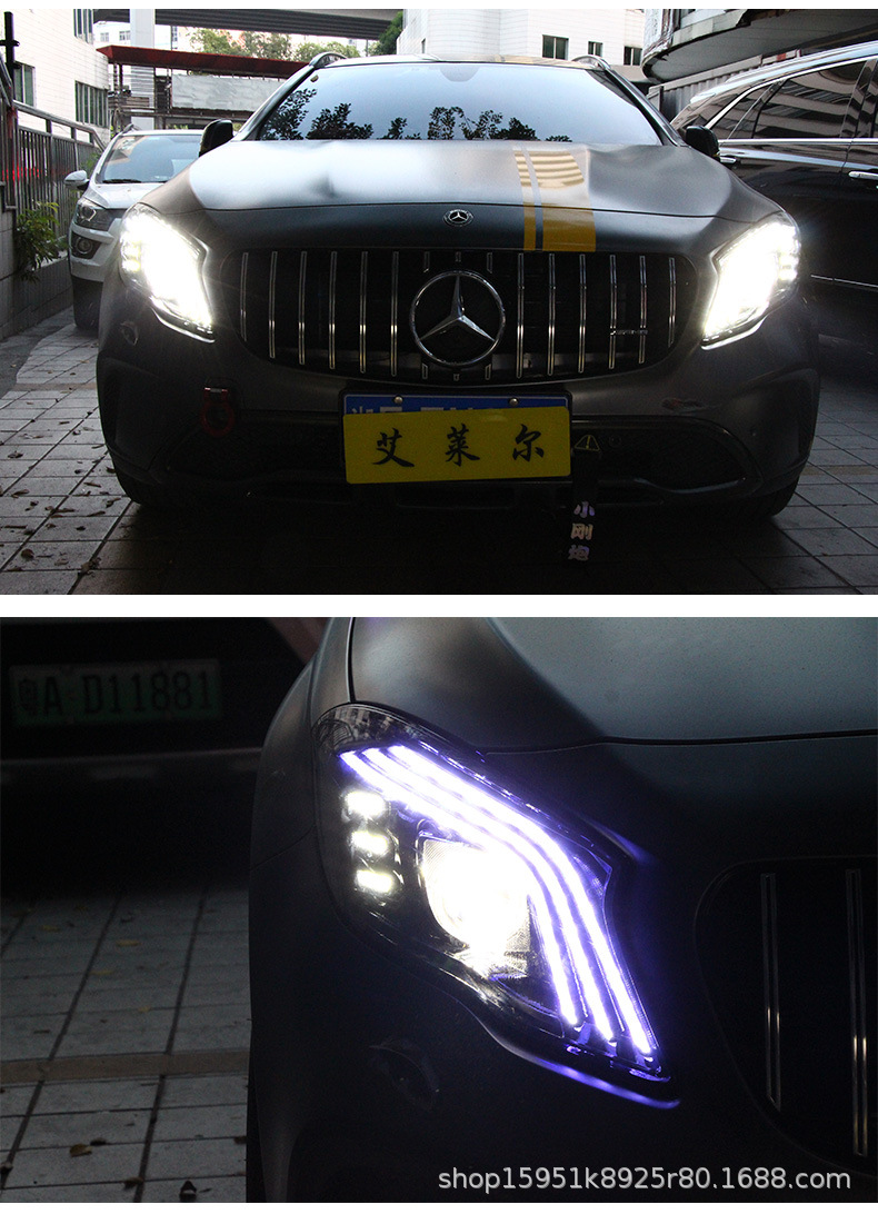 LED DRL Headlight Assembly with Blue Streamer Turn Signal for Mercedes-Benz GLA GLA200 GLA260